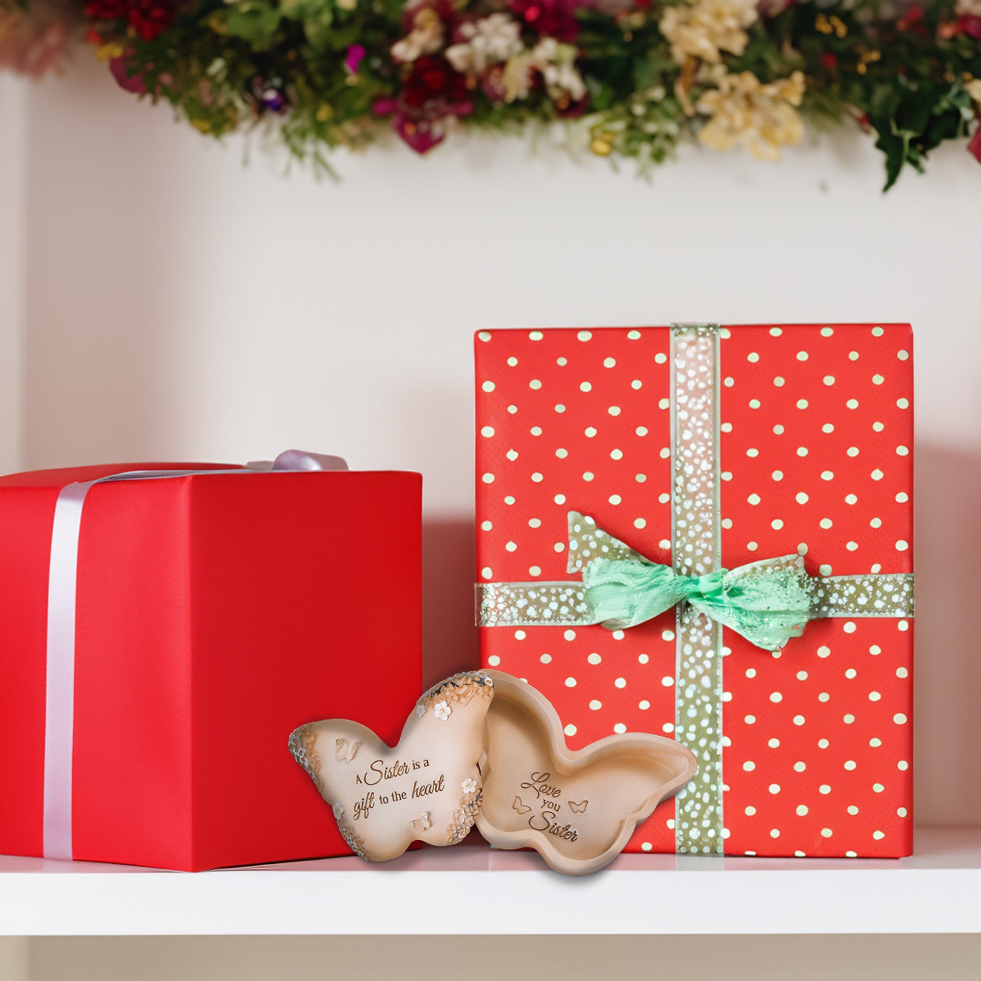 - IN-HOUSE DESIGN: The top of the keepsake box features the heartfelt phrase, "A Sister Is A Gift To The Heart" debossed and adorned with elegant hand-painted floral and butterfly details. Inside the box, the touching message "Love You Sister" is beautifully inscribed for a meaningful surprise.