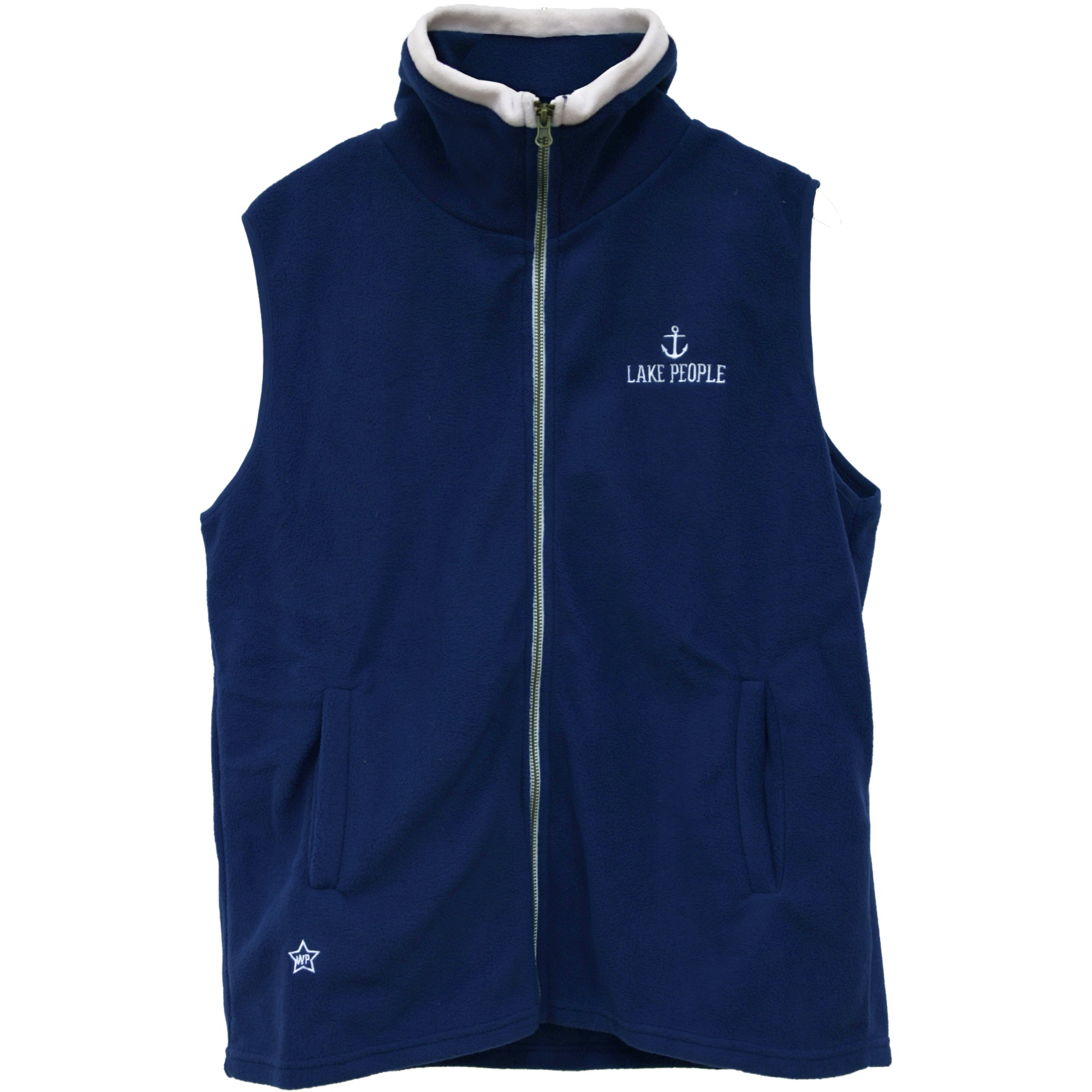 - IN-HOUSE DESIGN: The white piping at the top accompanies the navy blue background which houses a white embroidered anchor and "Lake People" sentiment over the left chest area and an embroidered "WP" star-shaped logo in the bottom right hand corner beneath the open pocket. These are unisex in size, so women should size down for a regular fit or order their usual size for a slightly loose fit.