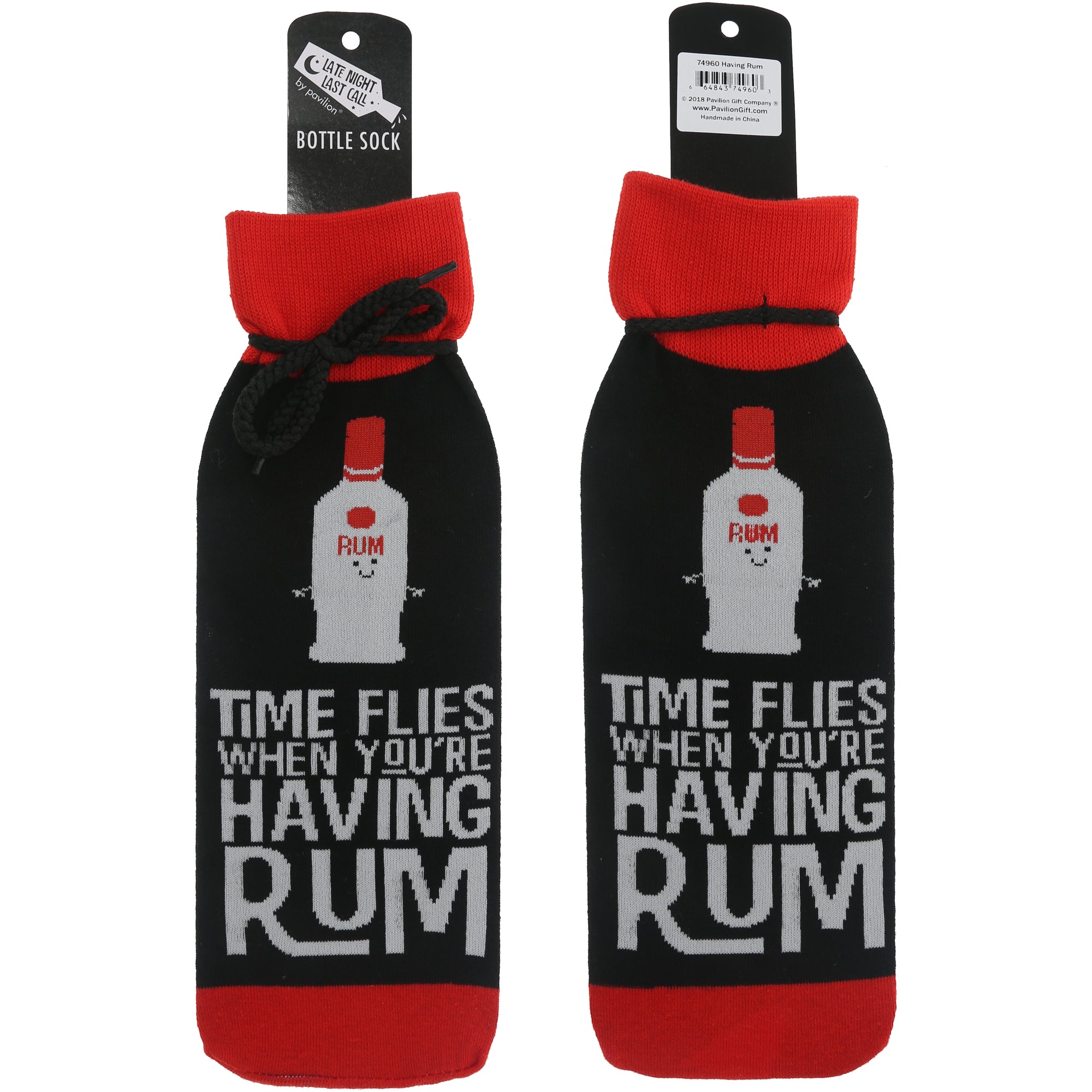 • IN-HOUSE DESIGN: "Time Flies When You're Having Rum" text and accompanying rum bottle icon are sewn into both sides of the bottle bag.