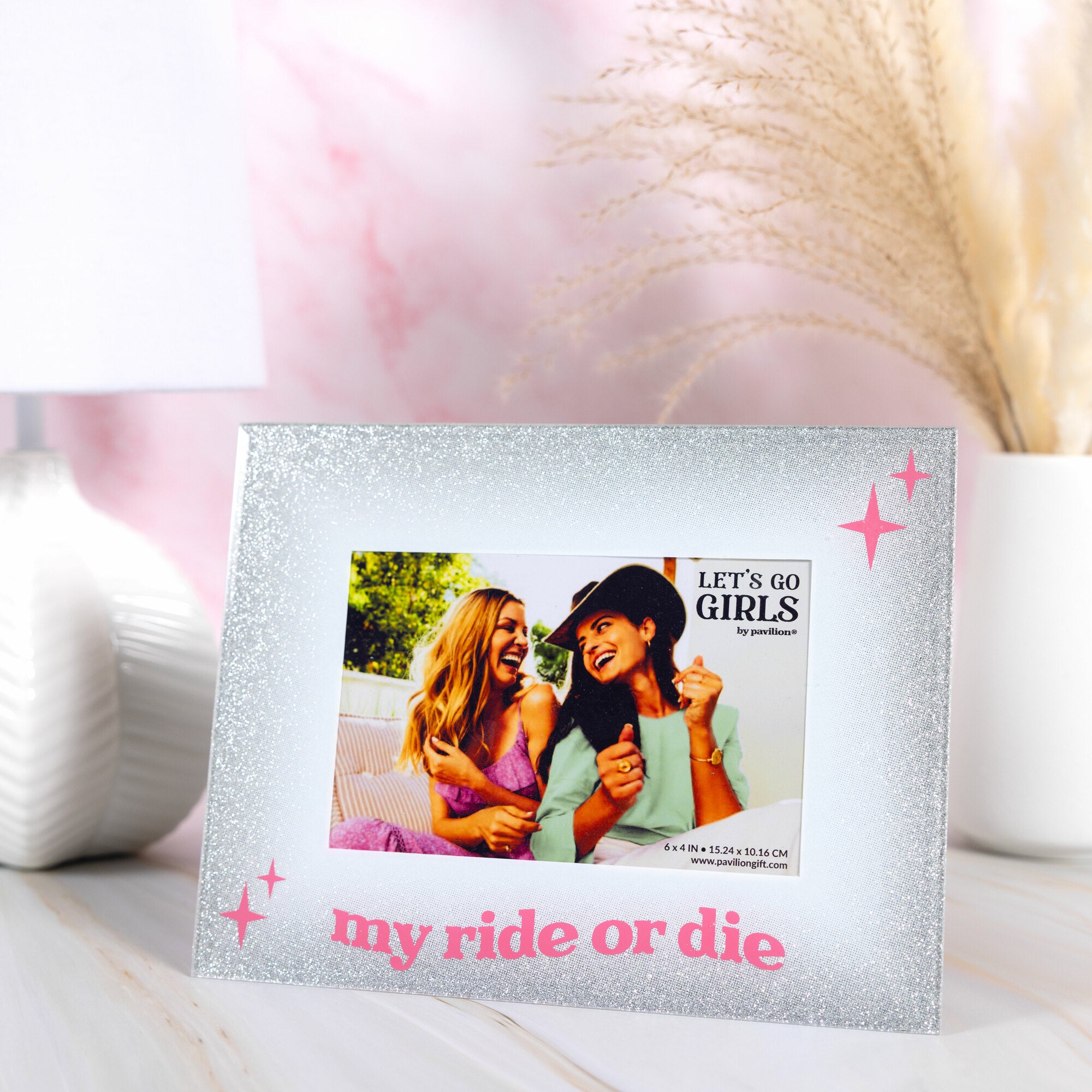 - IN-HOUSE DESIGN: Features a sparkling glitter ombre background with modern starbursts and the bold phrase “my ride or die” in vibrant pink. Stylish, playful, and perfect for showcasing best-friend moments, girl-gang memories, and fun snapshots.