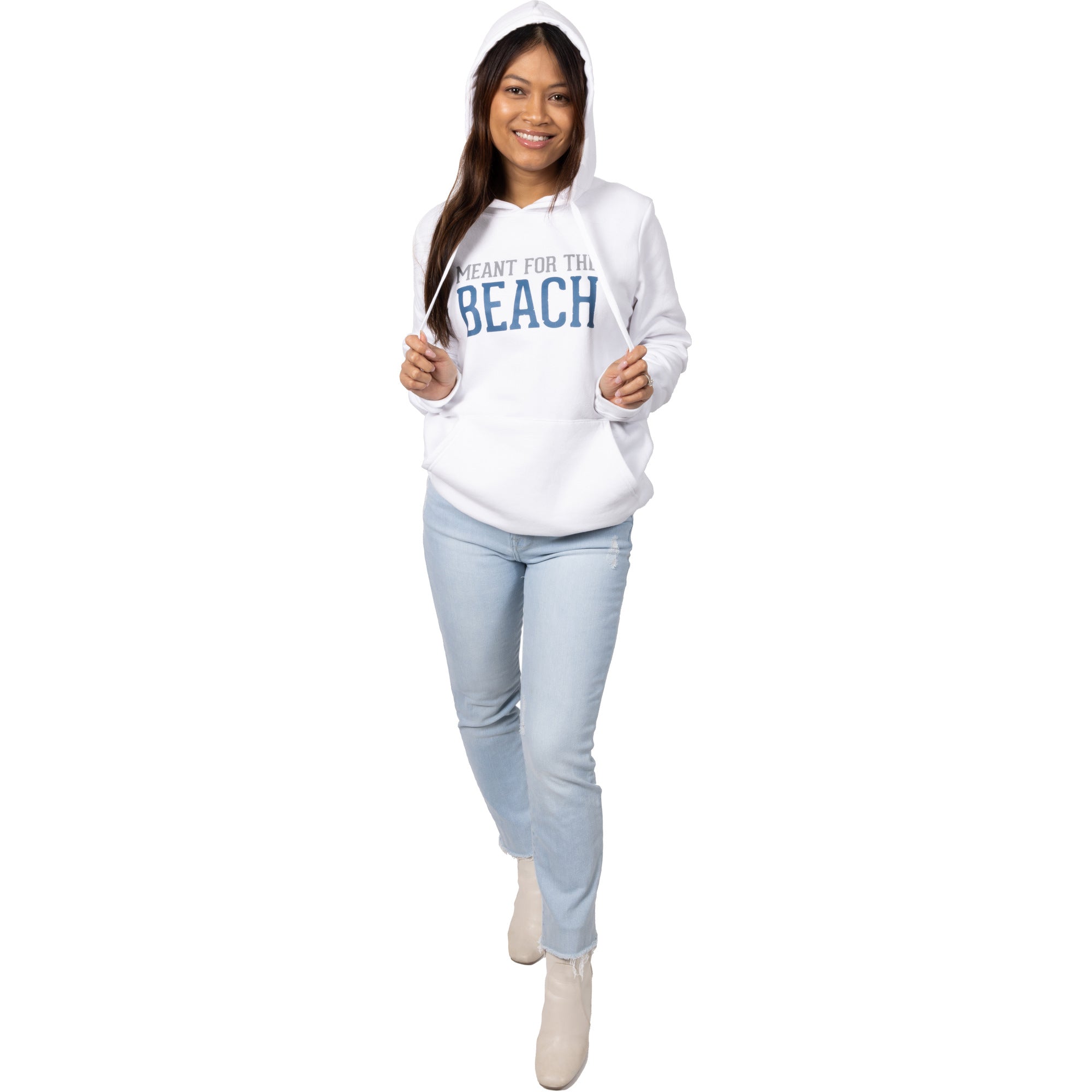 - IN-HOUSE DESIGN: The front of the pullover hooded sweatshirt features a distinctive 'Meant For The Beach' gray & blue printed rustic style font. The backside is adorned with blue flip-flops on the bottom right, adding a unique touch to the design.