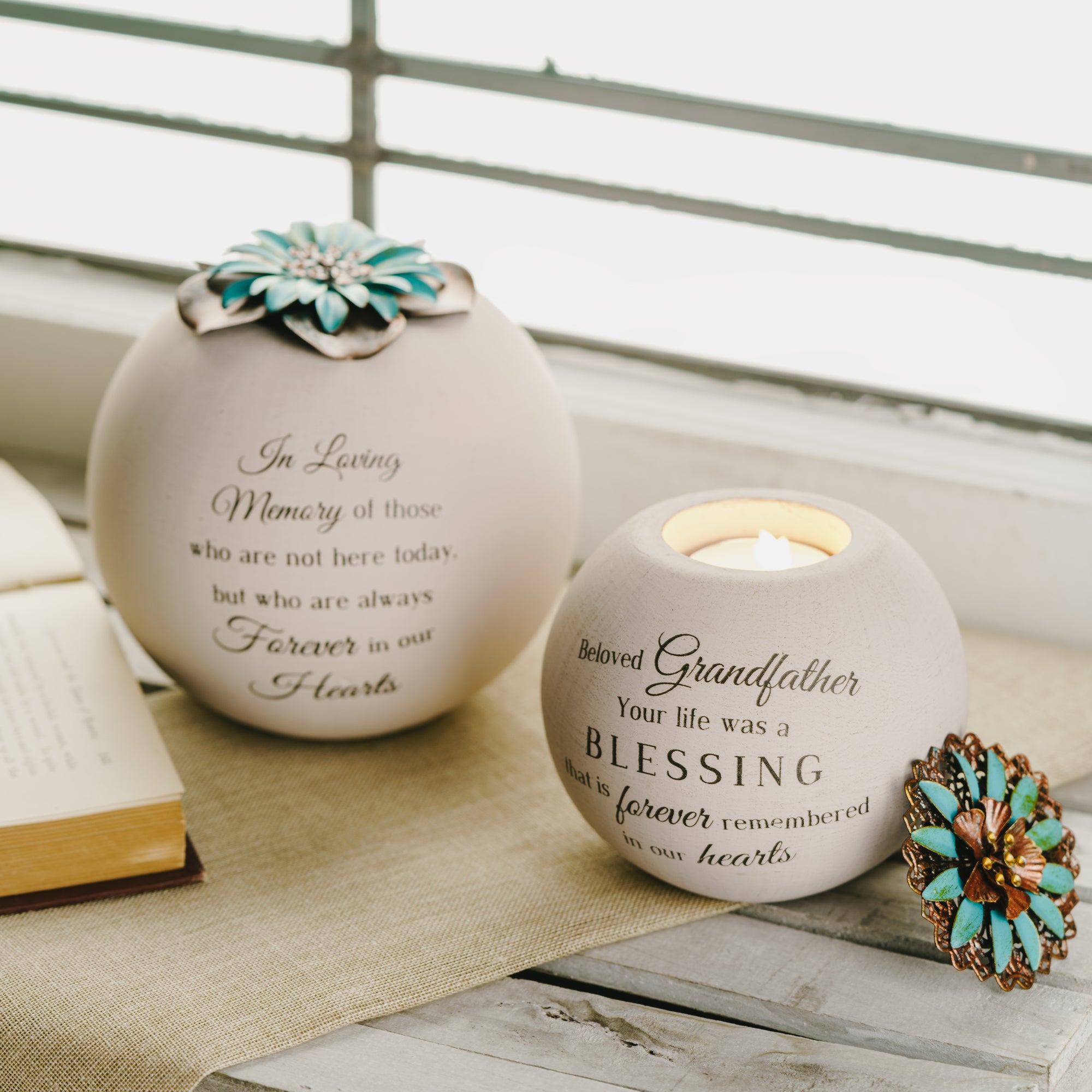 - IN-HOUSE DESIGN: "Beloved Grandfather your life was a blessing that is forever remembered in our hearts" text is printed onto the front of the candle holder.
