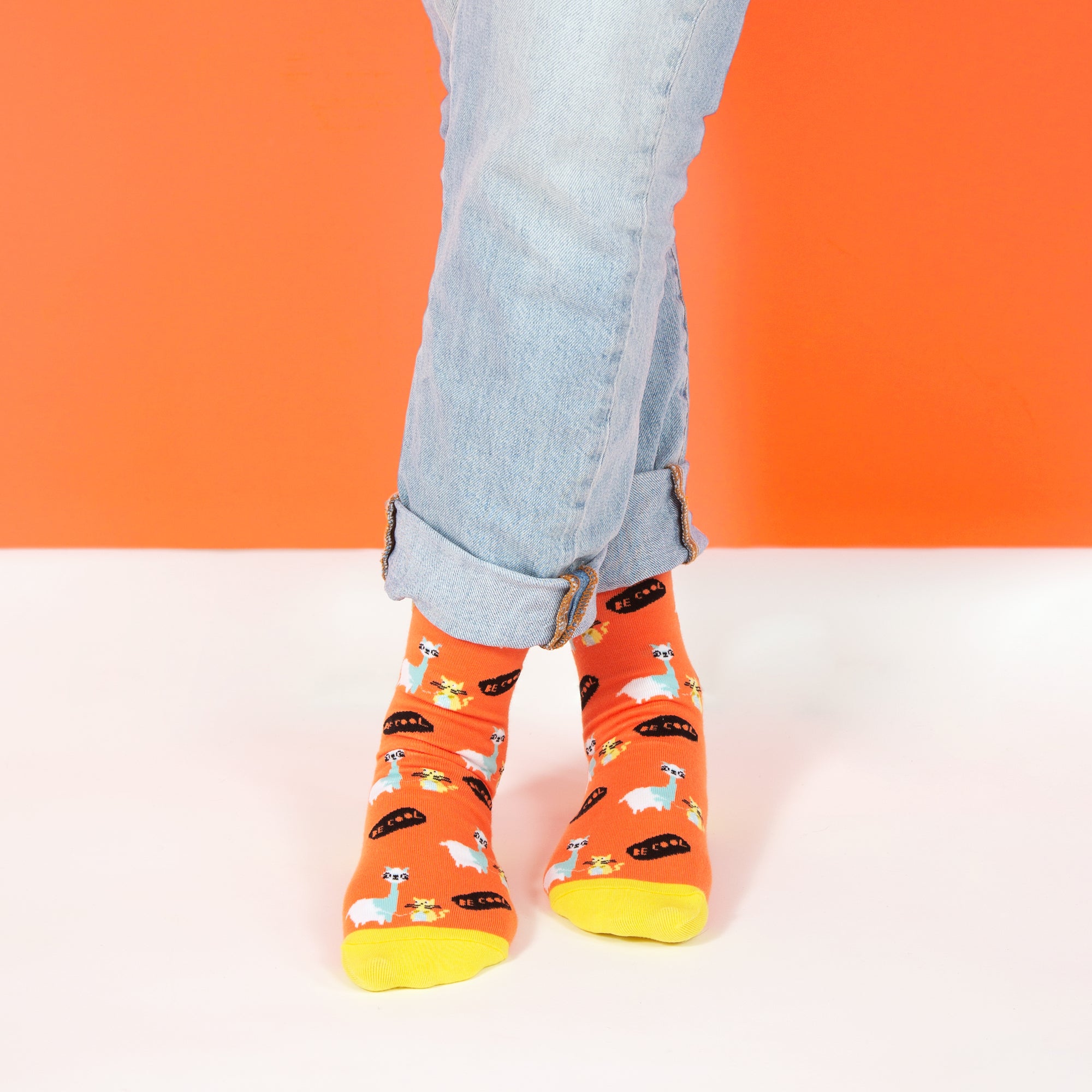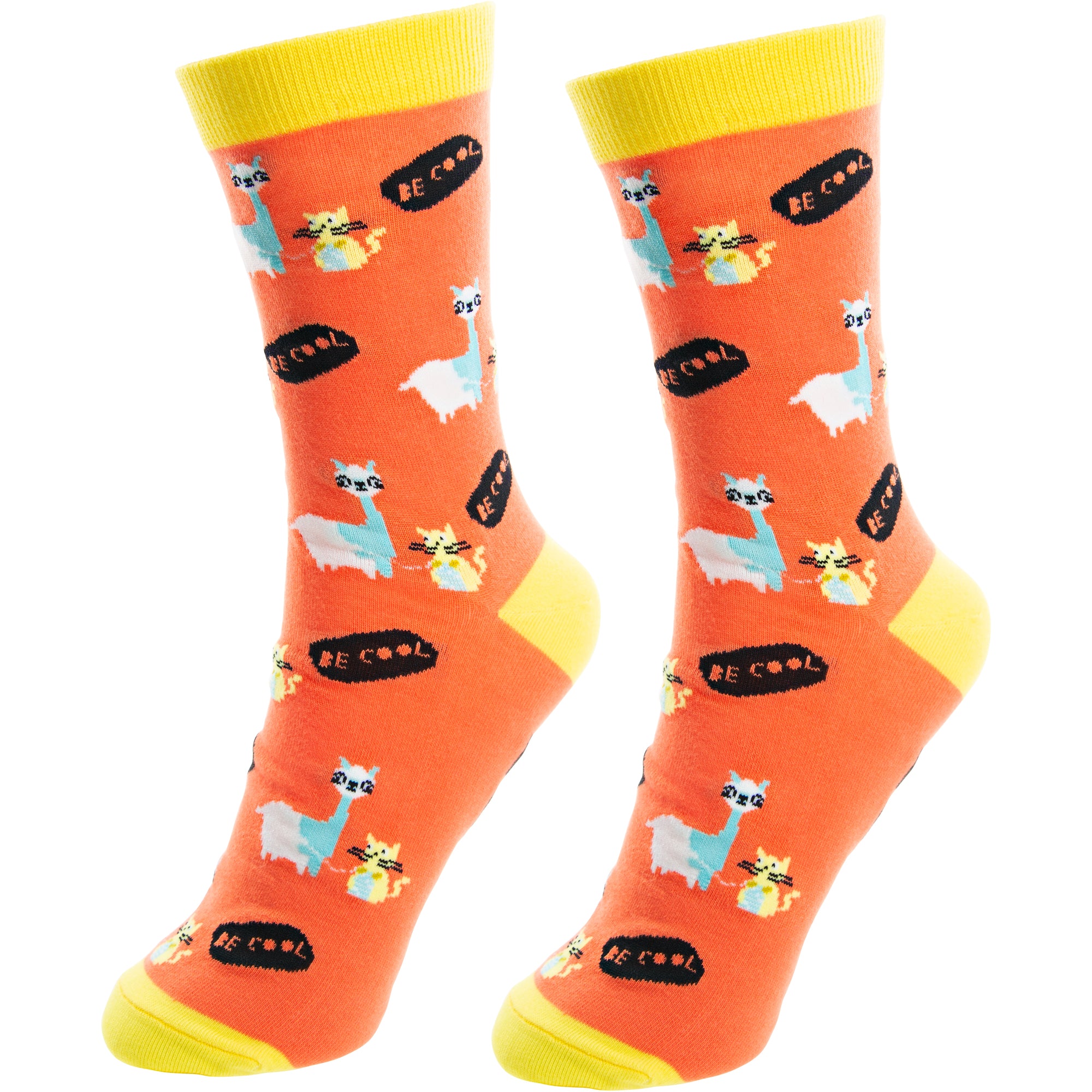 - IN-HOUSE DESIGN: "No Drama Llama" text is sewn into the base of the socks and is accompanied by a llama pattern with "Be Cool" text.