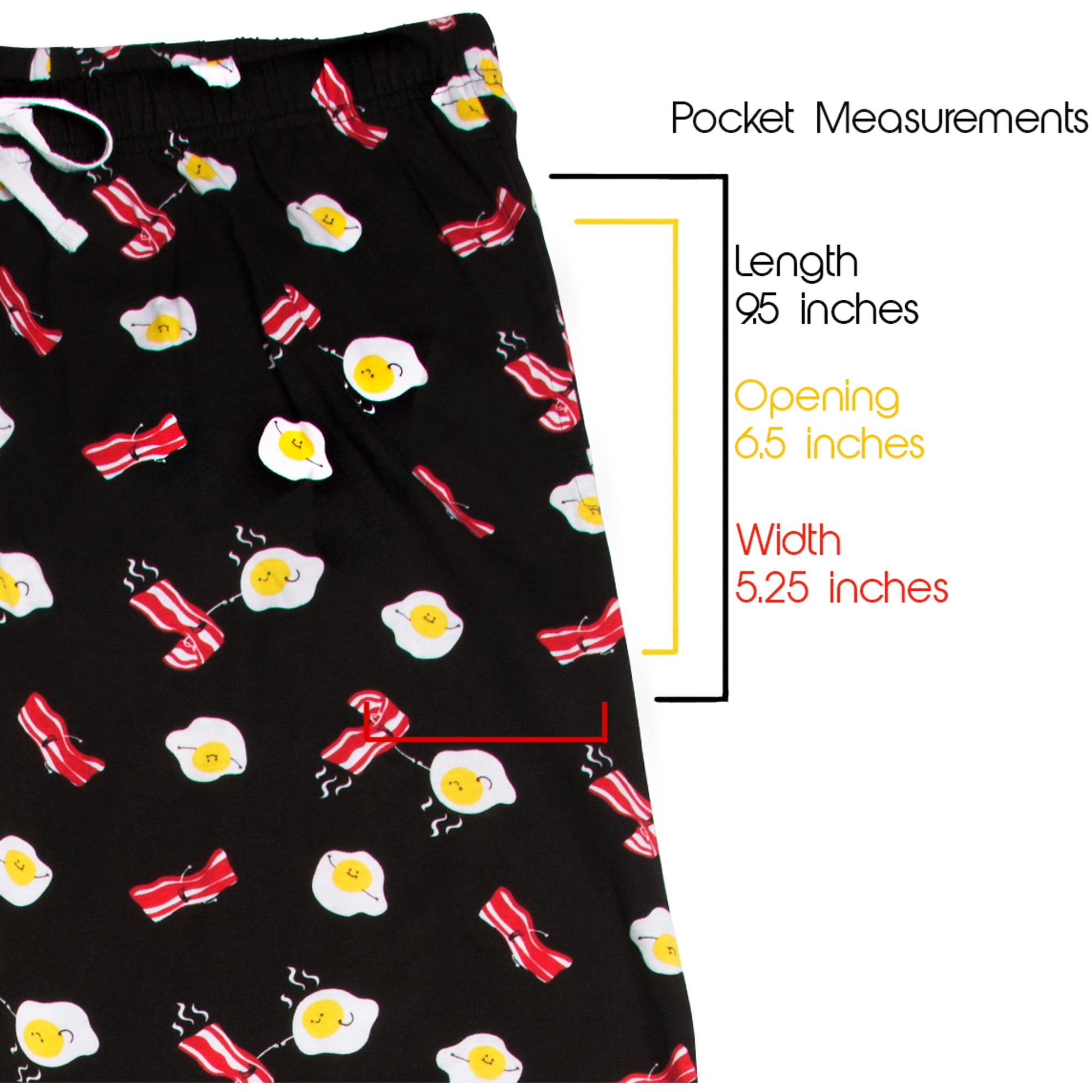 - IN-HOUSE DESIGN: Pattern features bacon and eggs.