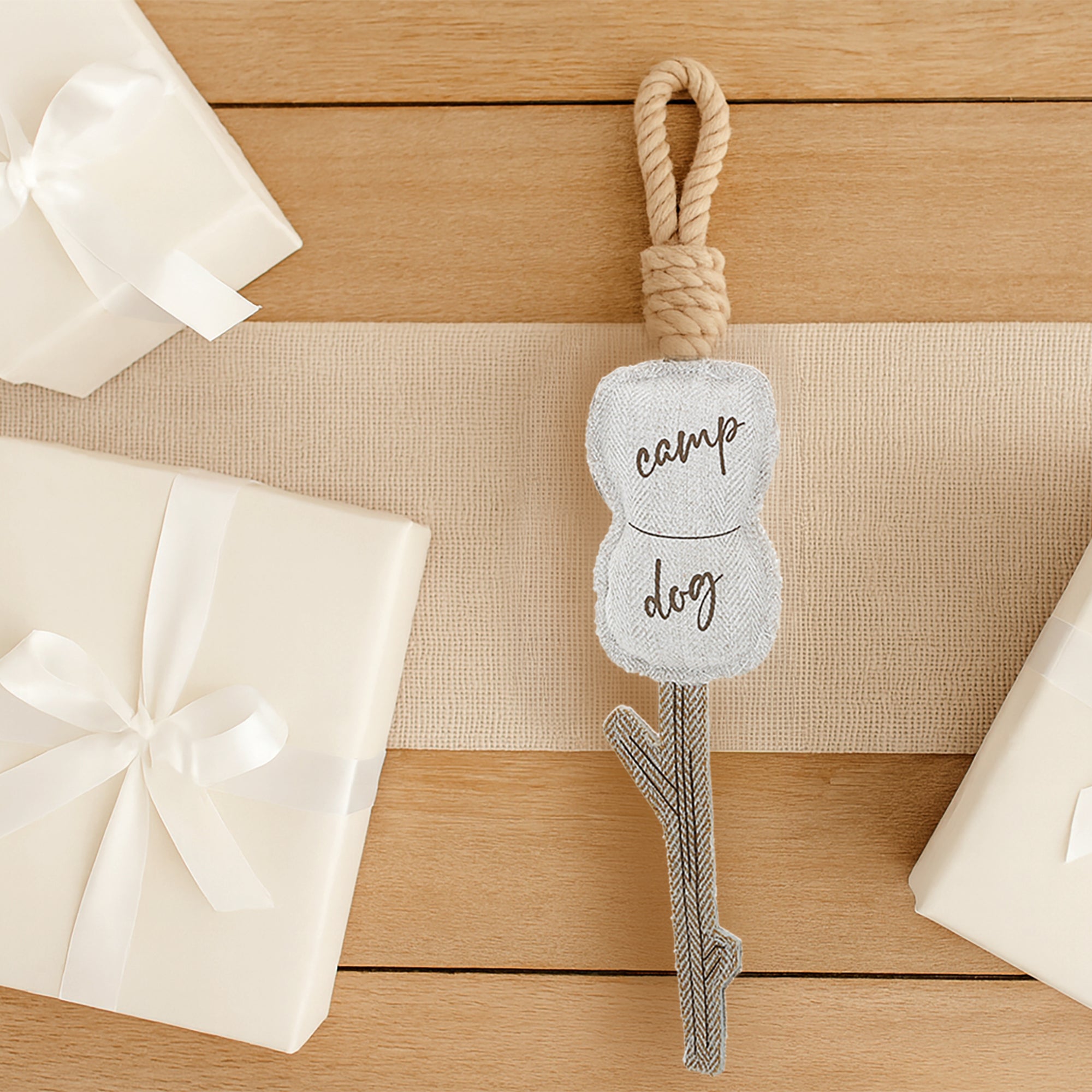 - IN-HOUSE DESIGN: Inspired by classic campfire treats, this toy mimics stacked marshmallows on a stick with “camp dog” printed across the top two. Rustic and clever, it brings a little outdoor nostalgia into every pup’s playtime.