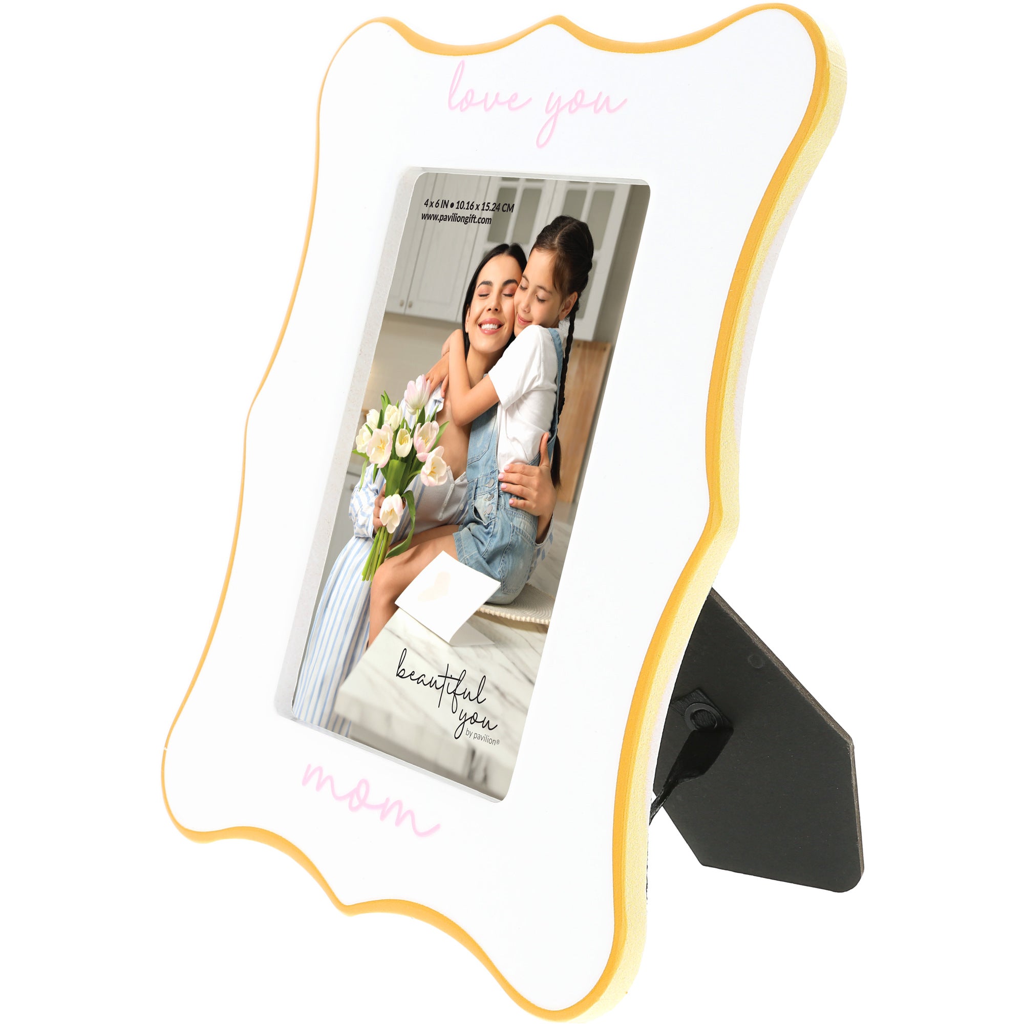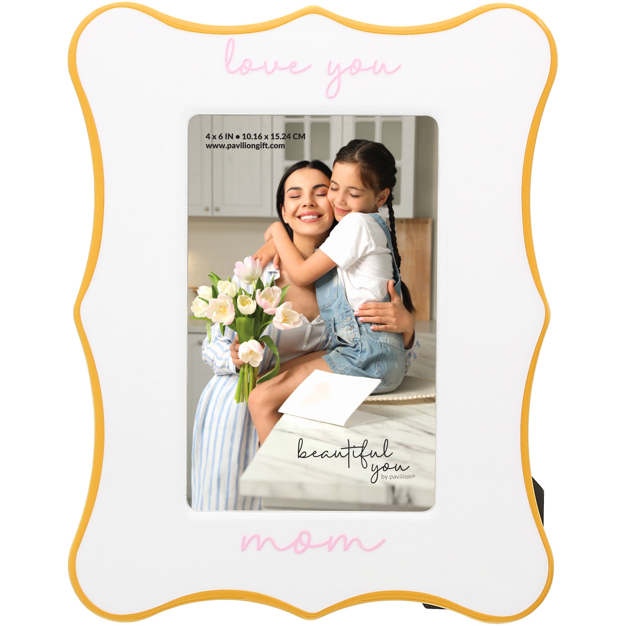 - IN-HOUSE DESIGN: Embellished with a soft pink, 3D embossed decal that reads “Love you mom” above and below the photo opening, this piece brings a delicate, loving touch to any room. The gentle pastel tones and clean white background make it a heartfelt decor accent that suits modern or traditional spaces alike.