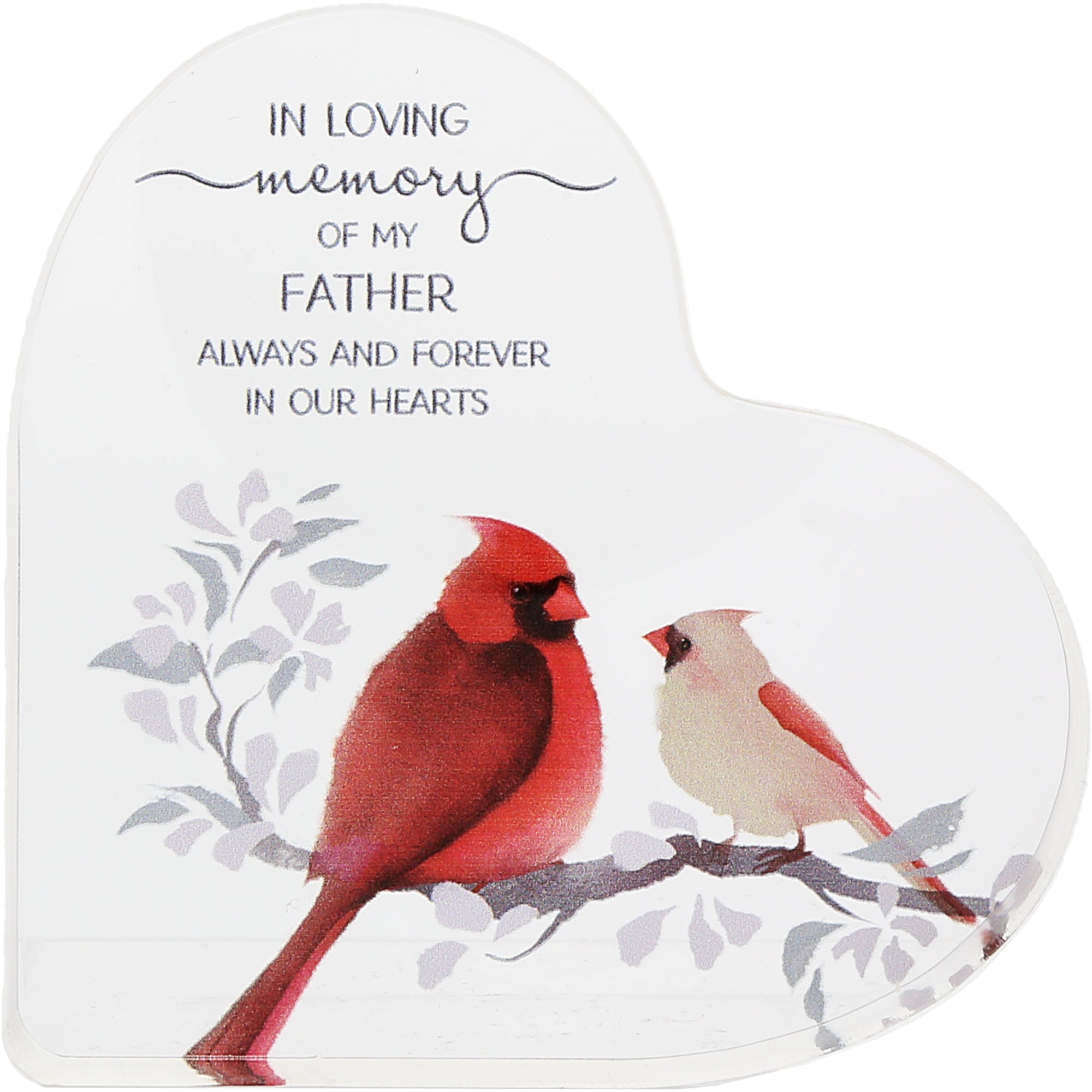 • IN-HOUSE DESIGN: Featuring a dignified cardinal illustration, the plaque is adorned with the sentiment, "In loving memory of my father, always and forever in our hearts." The striking red of the cardinal is complemented by soft background details, creating a peaceful and meaningful piece. This design captures the love, wisdom, and strength a father provides, making it a heartfelt addition to any home or memorial area.