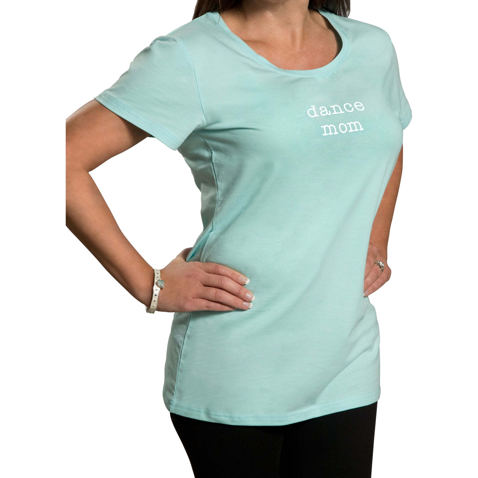 - IN-HOUSE DESIGN: "Dance Mom" text is printed onto the front of the shirt.