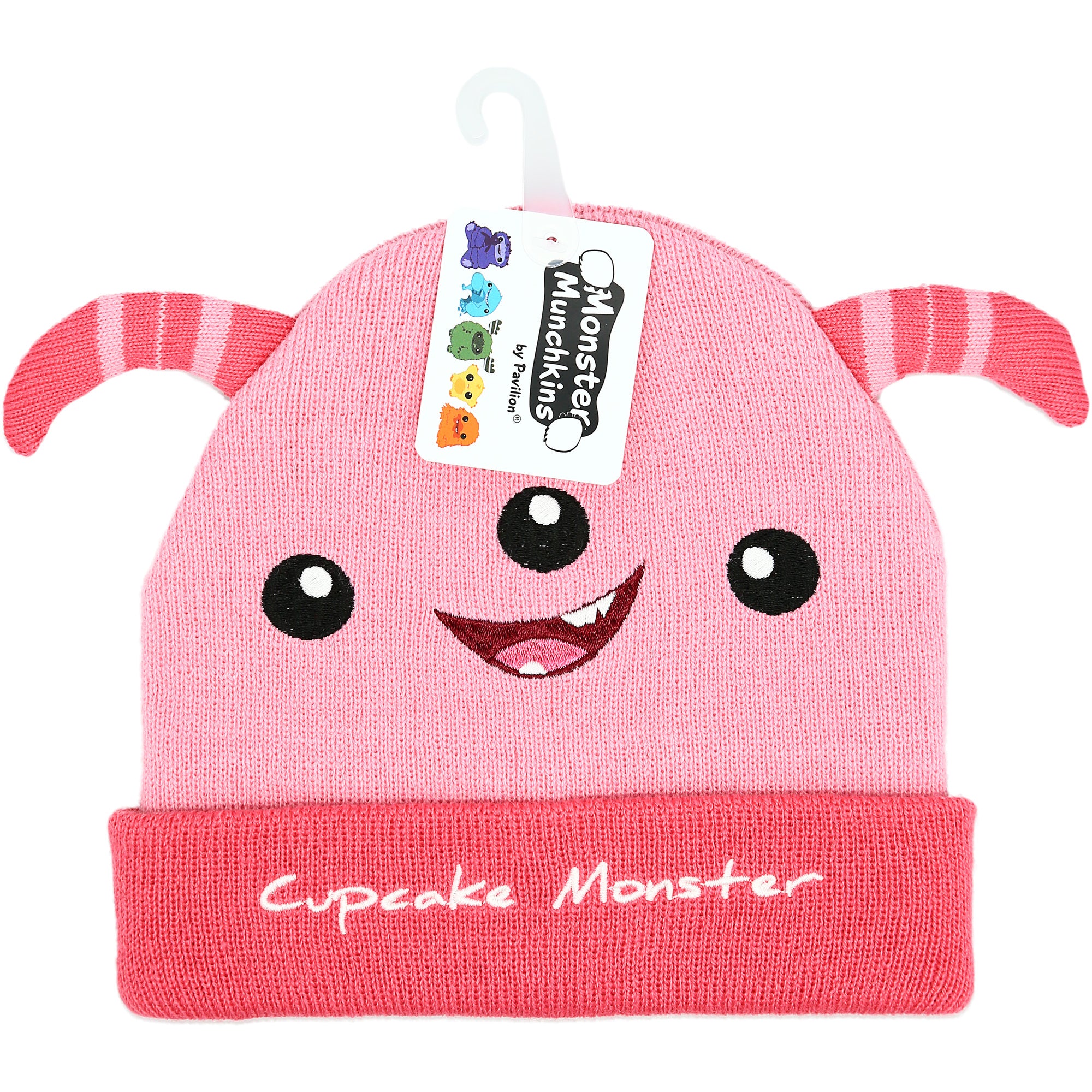 - IN-HOUSE DESIGN: The big pink triple-eyed and double-horned monster with embroidered eyes/mouth is accompanied by a "Cupcake Monster" white embroidered sentiment.