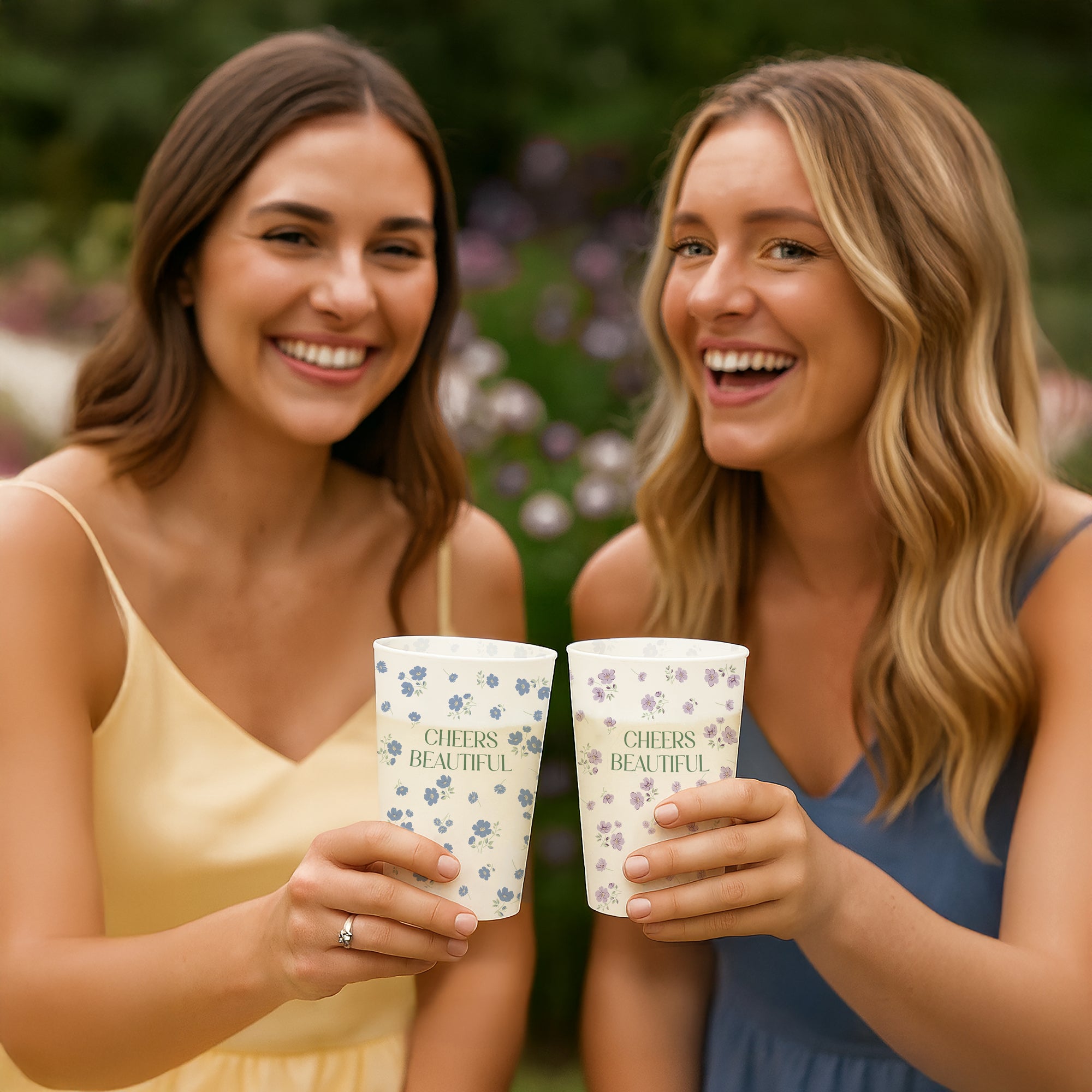 - IN-HOUSE DESIGN: Part of the Petals of Love collection, each cup features delicate full-wrap floral patterns paired with the uplifting phrase “Cheers Beautiful.” Designed with Pavilion’s signature attention to color and composition, these prints bring an elegant yet cheerful aesthetic to your table setting. The floral designs were inspired by nature’s gentlest blooms—symbolizing kindness, friendship, and self-love—making them as meaningful as they are beautiful.