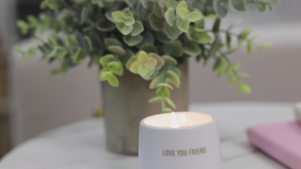 - IN-HOUSE DESIGN: As the candle burns, it reveals the uplifting message “You Are The Best” after 10 minutes, becoming fully visible after 40 minutes. The “Love You Friend” sentiment on the front of the candle makes it a perfect way to celebrate the bond of friendship.