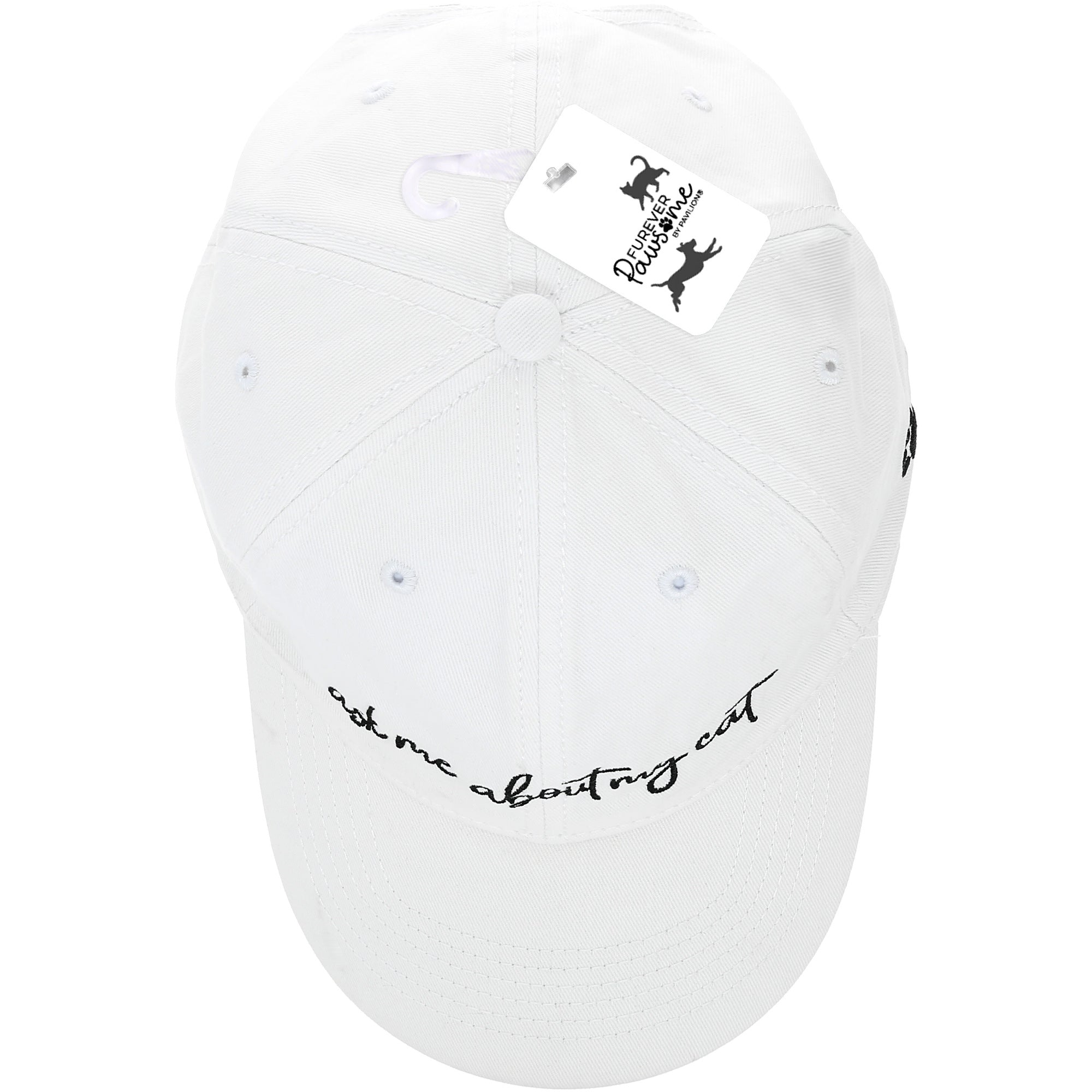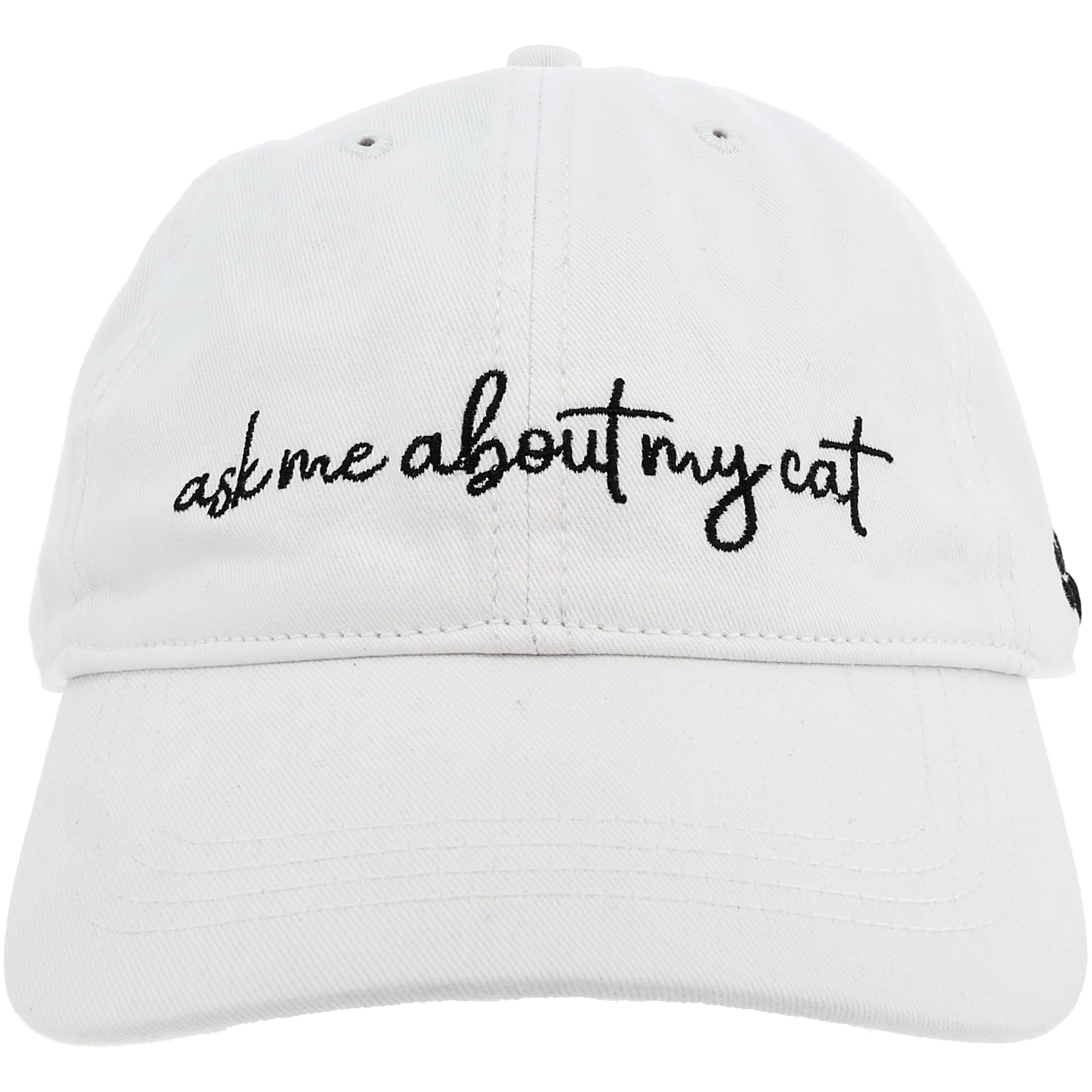 - IN-HOUSE DESIGN: The dark gray embroidered sentiment “Ask Me About My Cat” adds a playful and expressive touch to the cap, letting fellow feline fans know about your love for cats. A charming paw print is also embroidered on the side, giving the hat an extra touch of personality. Its sleek white color ensures it pairs well with a variety of casual outfits, making it a go-to accessory for cat parents.