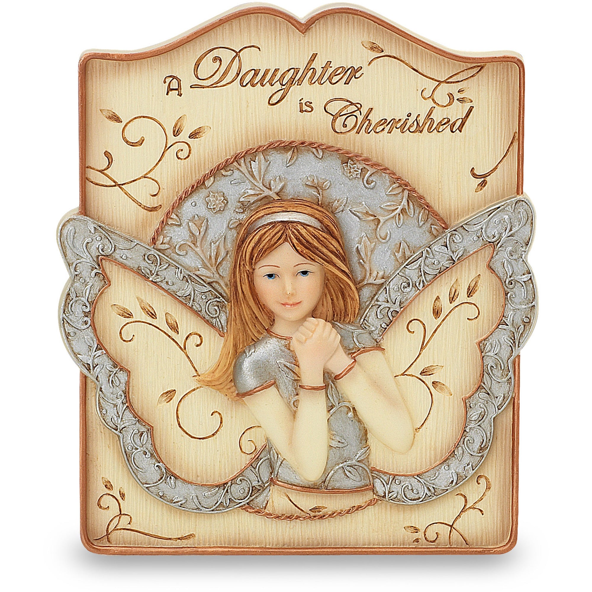 - IN-HOUSE DESIGN: "A Daughter Is Cherished" text and accompanying angel design are both hand-painted onto the front of the plaque.