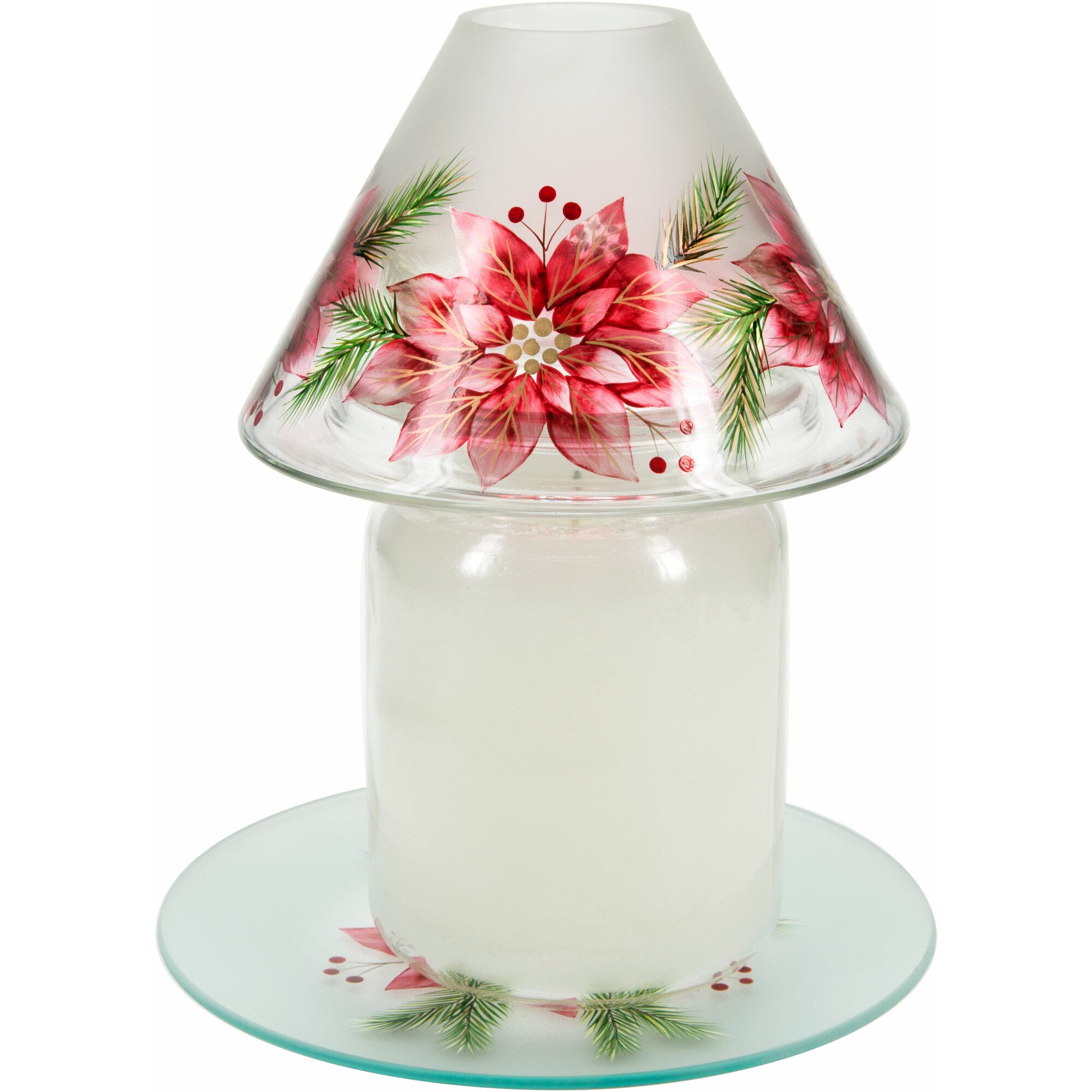 • IN-HOUSE DESIGN: Poinsettia design is hand-painted all around the outside of the candle tray.