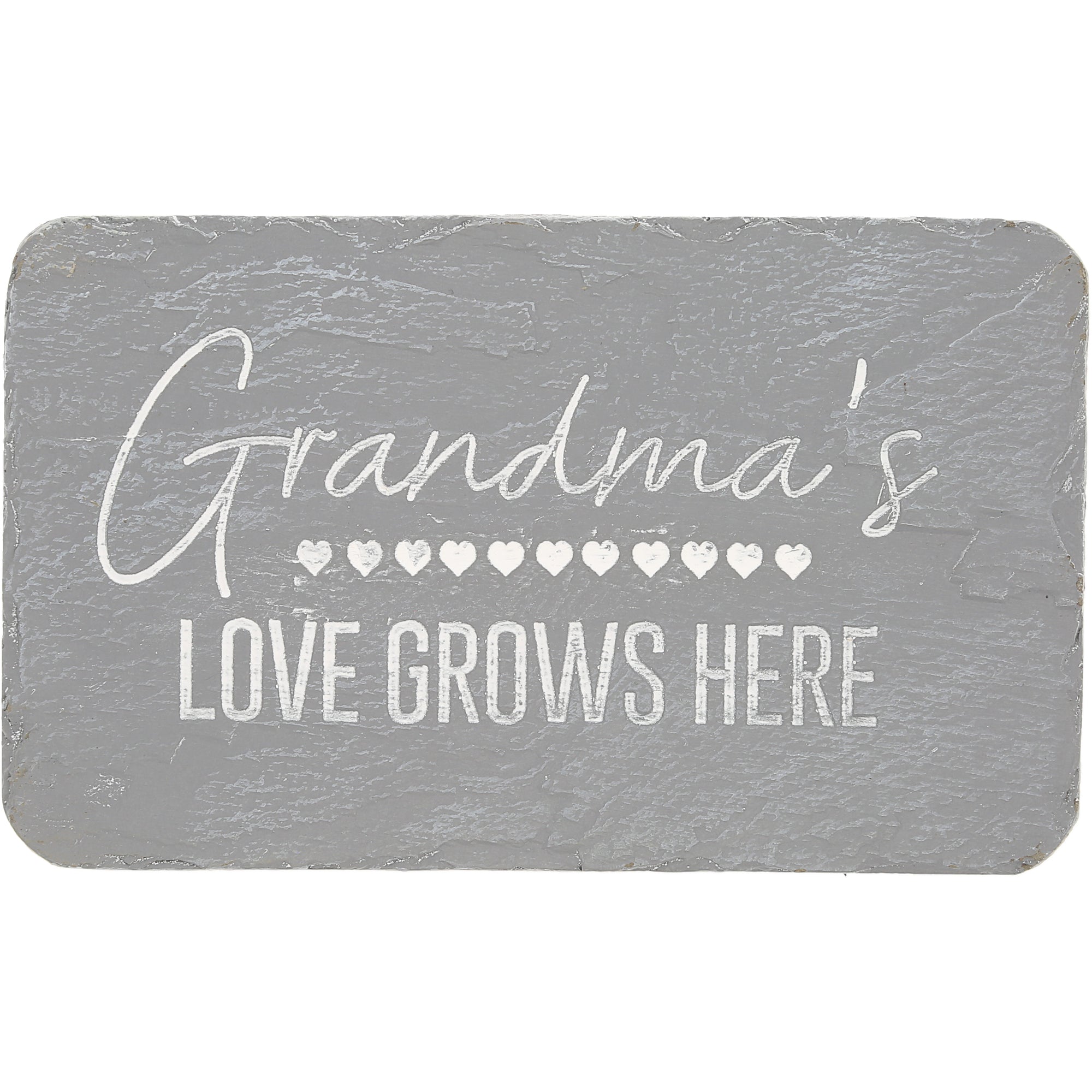 - IN-HOUSE DESIGN: This gray garden stone has a textured surface and rounded edges. It features a row of hearts and the heartfelt sentiment "Grandma's Love Grows Here." This charming stone adds a touch of warmth and love to any outdoor or indoor space, serving as a meaningful reminder of the welcoming atmosphere within your home.