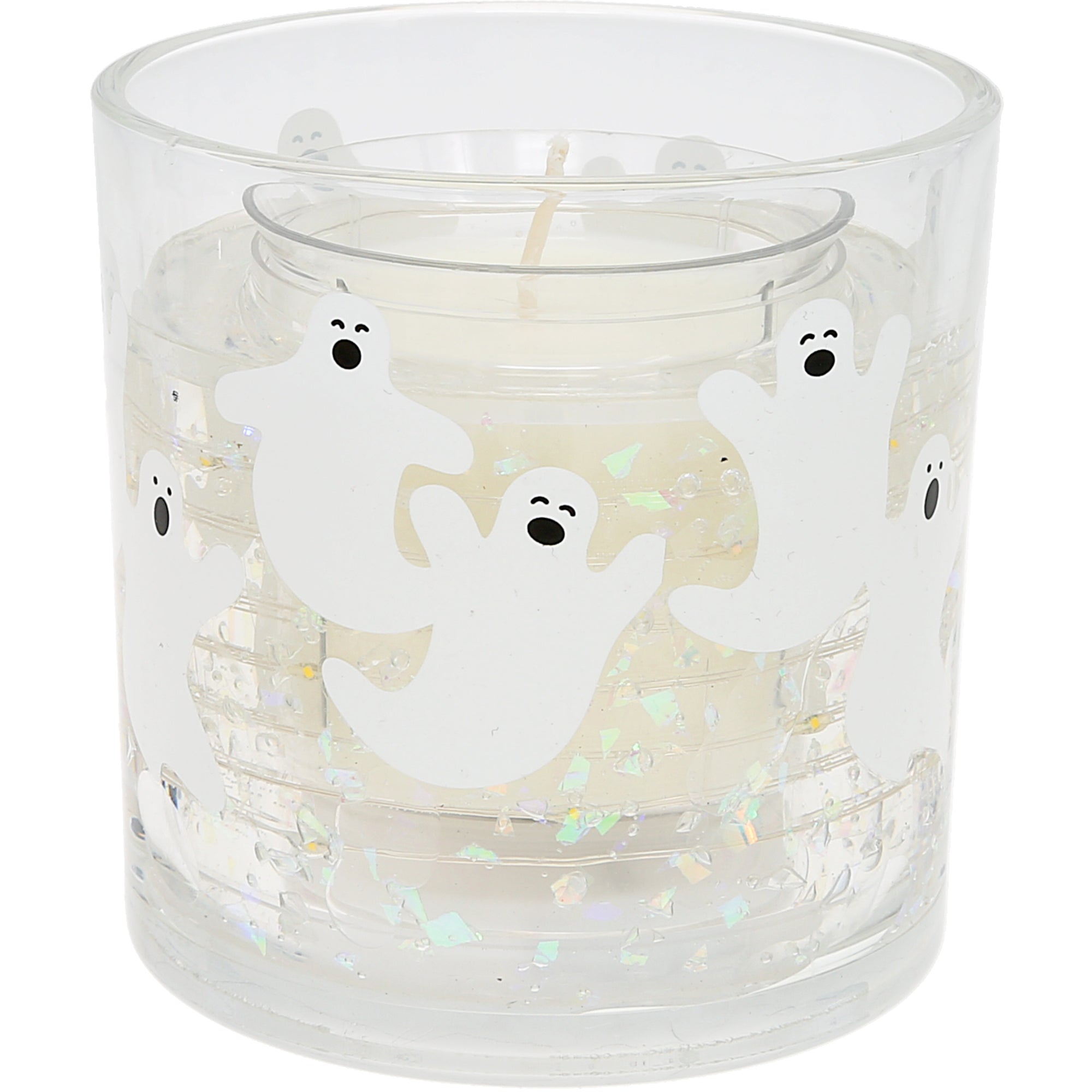 - IN-HOUSE DESIGN: Features three friendly ghosts floating across the glass with bold orange-and-black “Happy Halloween” lettering. Iridescent glitter adds magical movement, catching the light like moonlit sparkles on a spooky night.