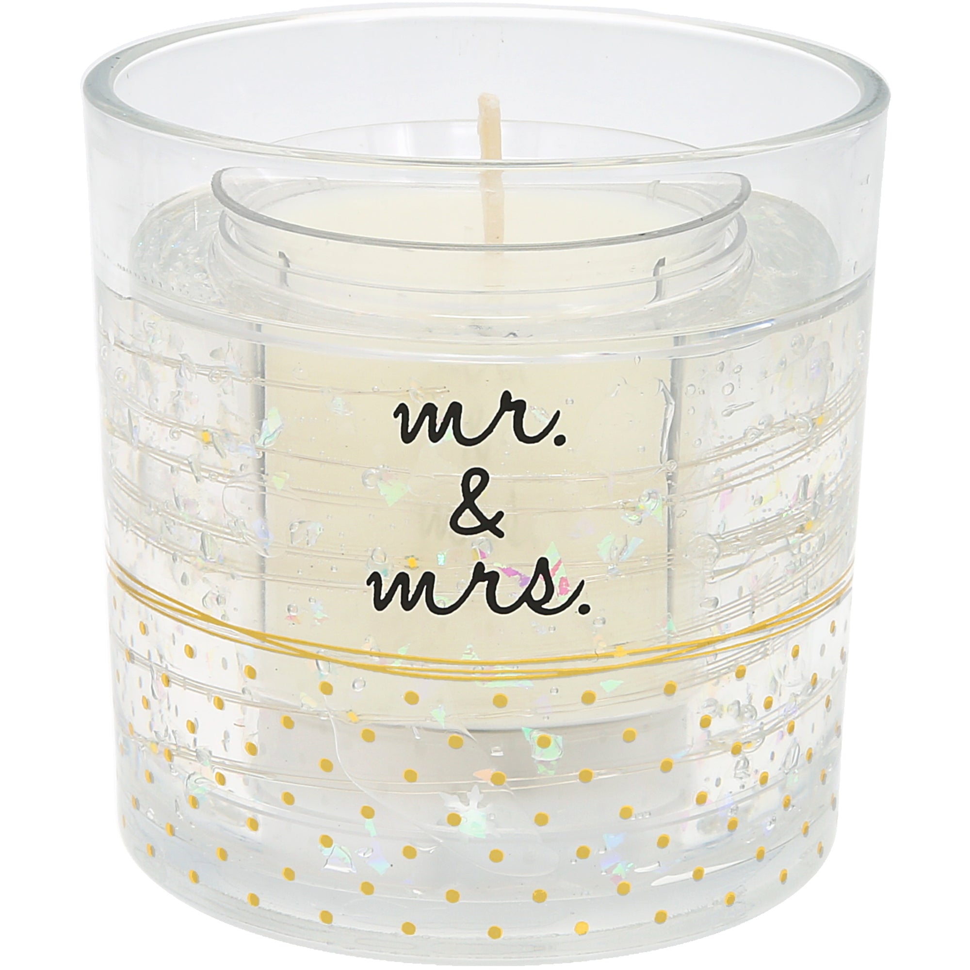 • PREMIUM QUALITY: Unscented 3.5 oz soy candle with a real wick and LED-gel illumination technology. The warm glow enhances the printed gold dot artwork around the glass. Packaged with a printed band, acetate wax cover, and white die-cut gift box.