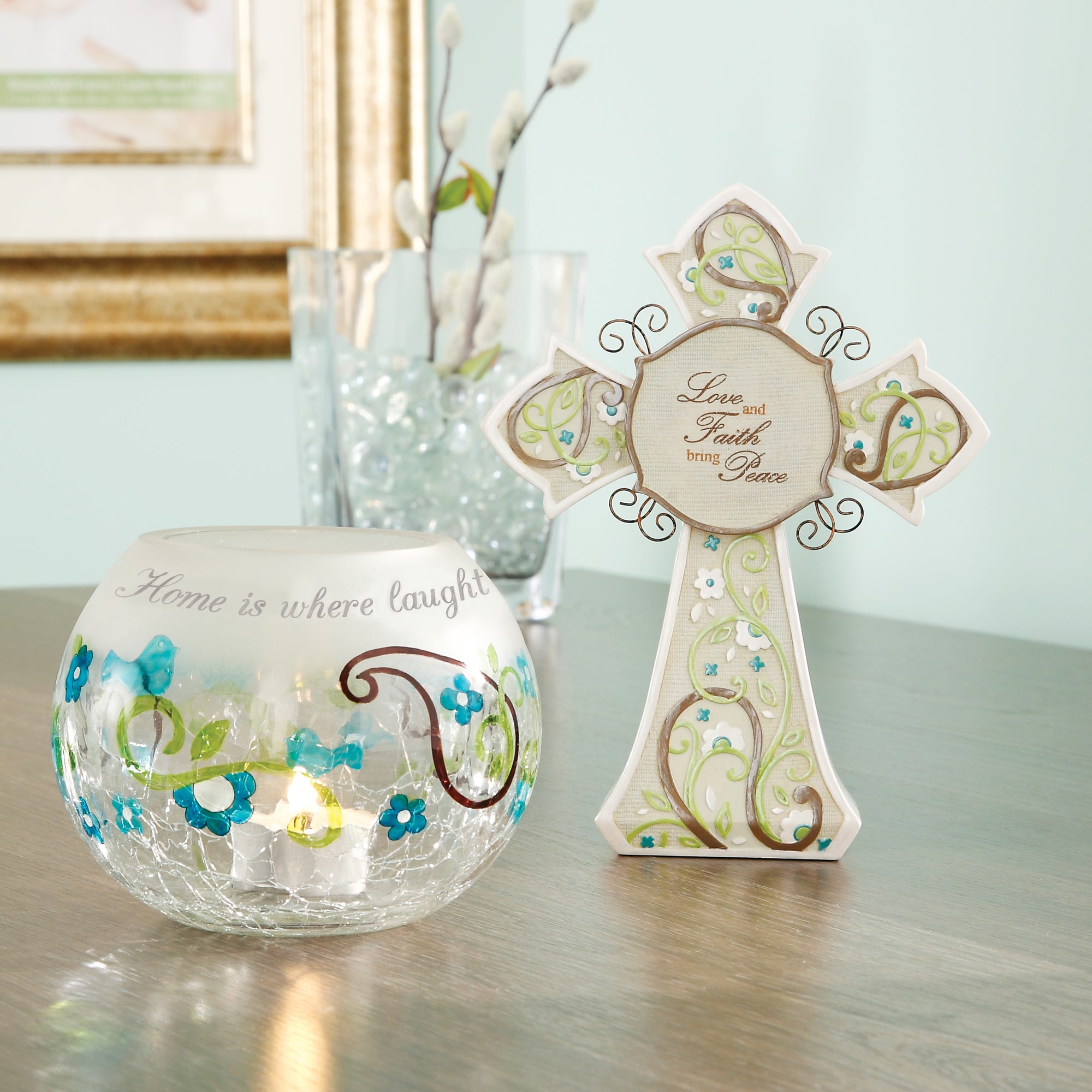 - IN-HOUSE DESIGN: "Love And Faith Bring Peace" and accompanying paisley design are both hand-painted onto the front of the cross.