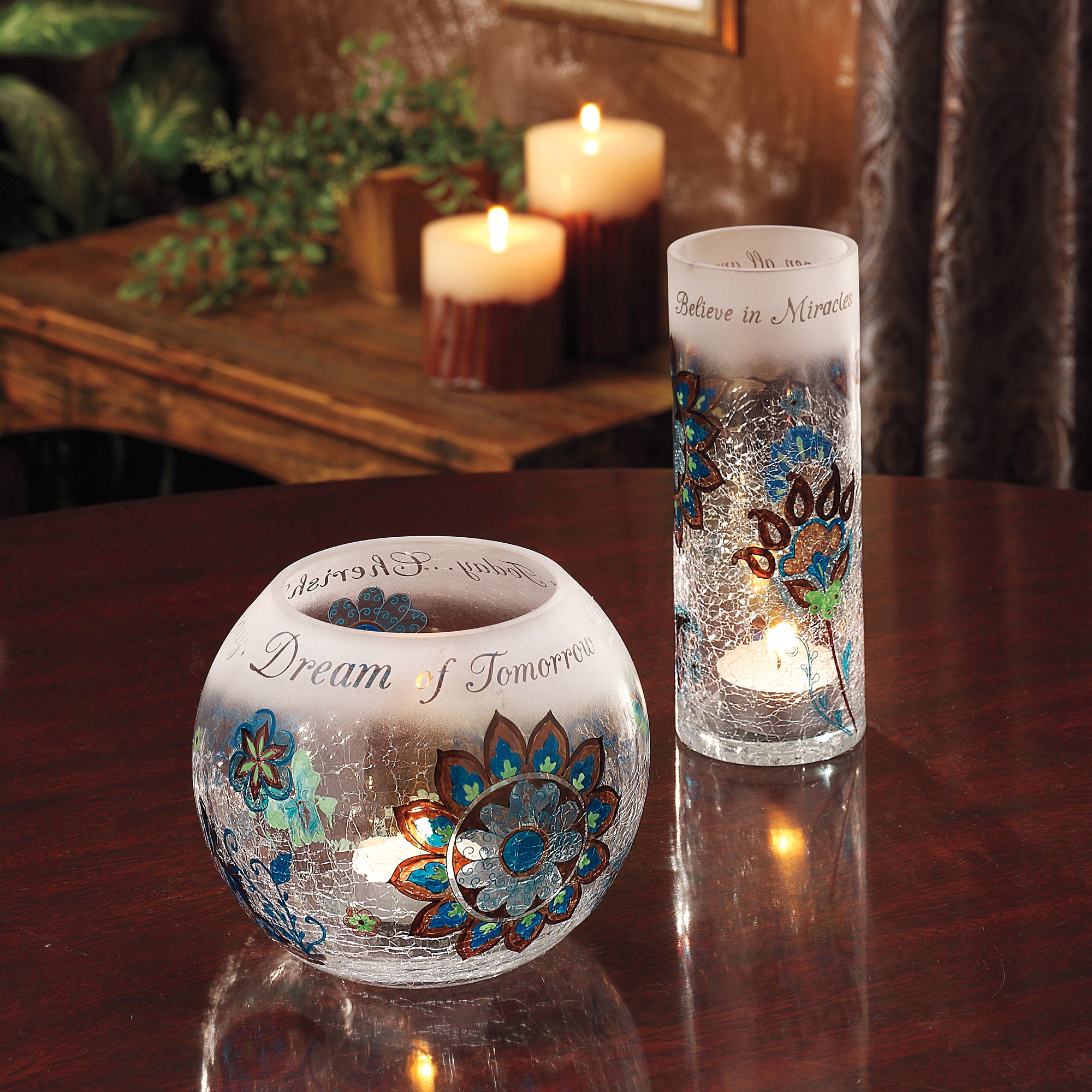 - IN-HOUSE DESIGN: "Believe In Miracles; They Happen All Around You" text and paisley details are hand-painted onto the candle holder.