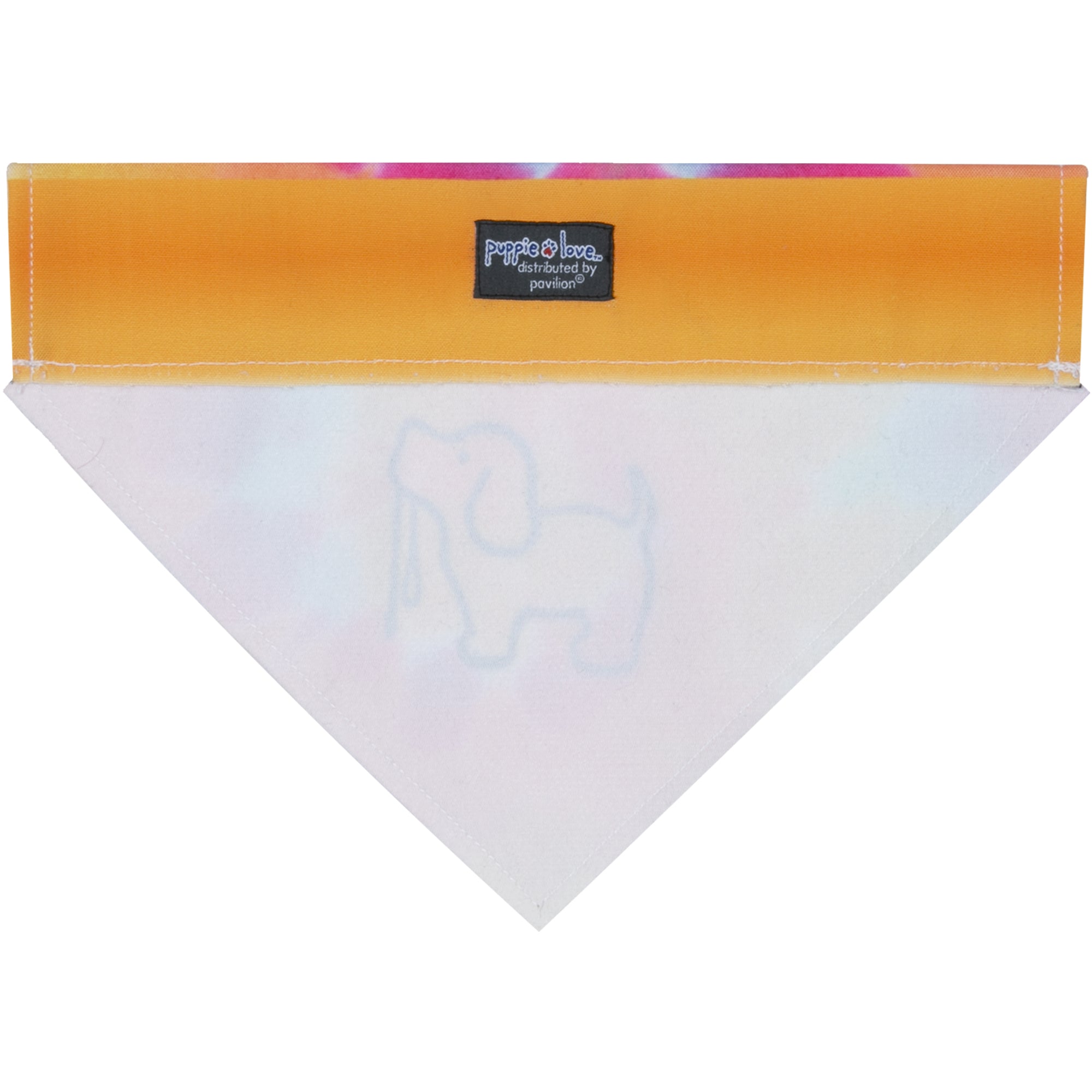 - IN-HOUSE DESIGN: "Puppie Love" text and accompanying dog icon with tie-dye detailing are both sewn into the front of the bandana.