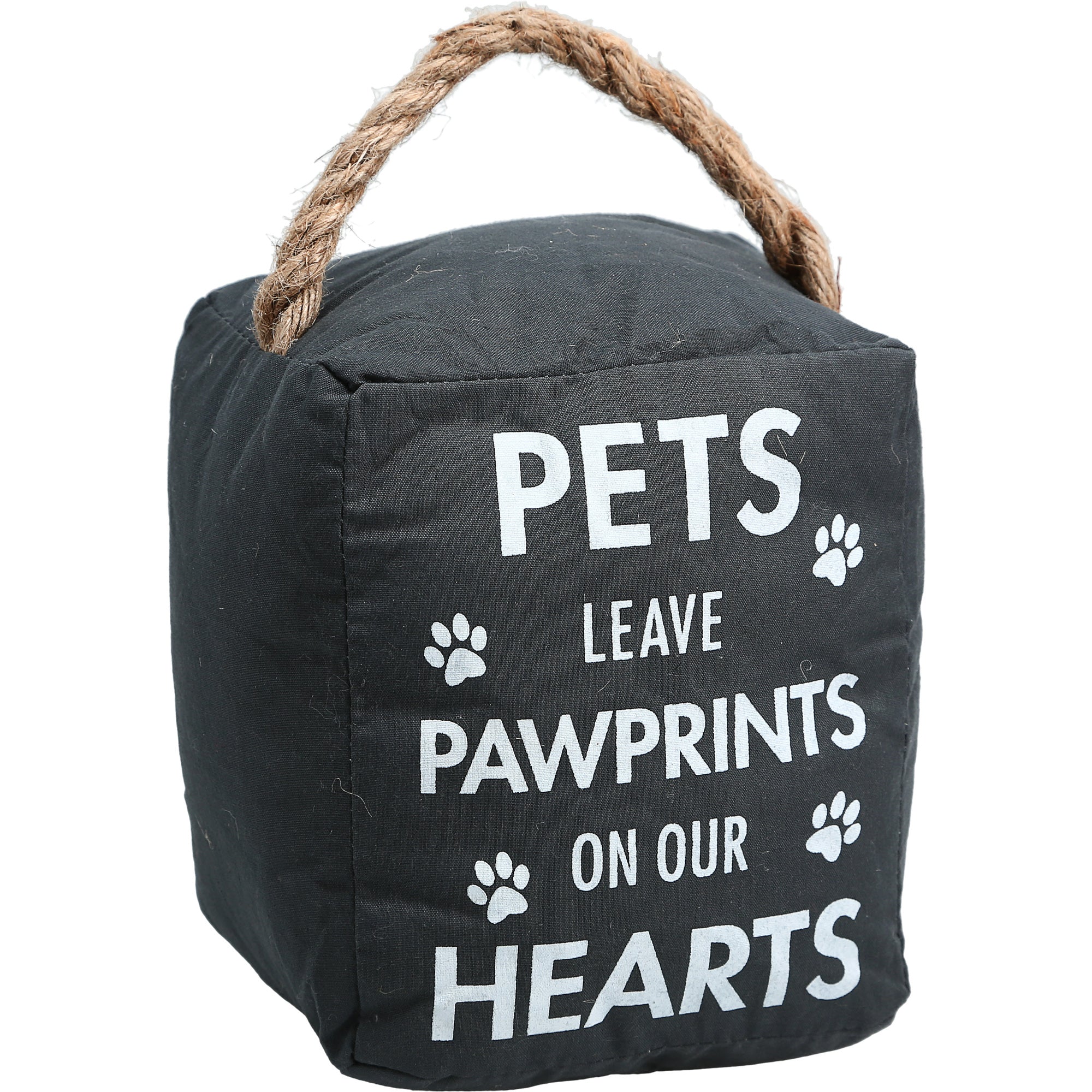 • IN-HOUSE DESIGN: The overall gray stopper has a white screen printed "Pets Leave Pawprints On Our Hearts" sentiment and four silhouette paw prints on the front side of the bean bag. Also, utilize these as bookends, even put behind a door to prevent the handle from damaging the walls or in front to keep the door propped open.
