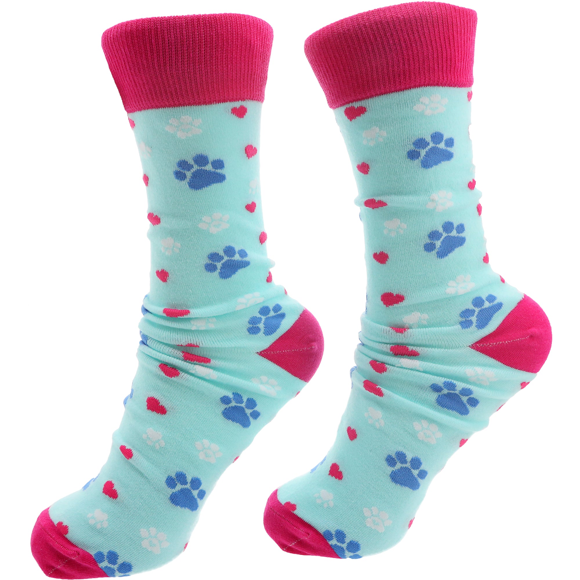 - IN-HOUSE DESIGN: The socks feature a white and blue pawprint and a hot pink heart pattern on a bright blue background. The heels, toes, and ankles are hot pink. The mug has a sparkly pink and black "I Wanna Be A Stay At Home Cat Mom" sentiment with a pawprint-shaped "o" and a silhouette heart in the center glossy decal printed onto one side.