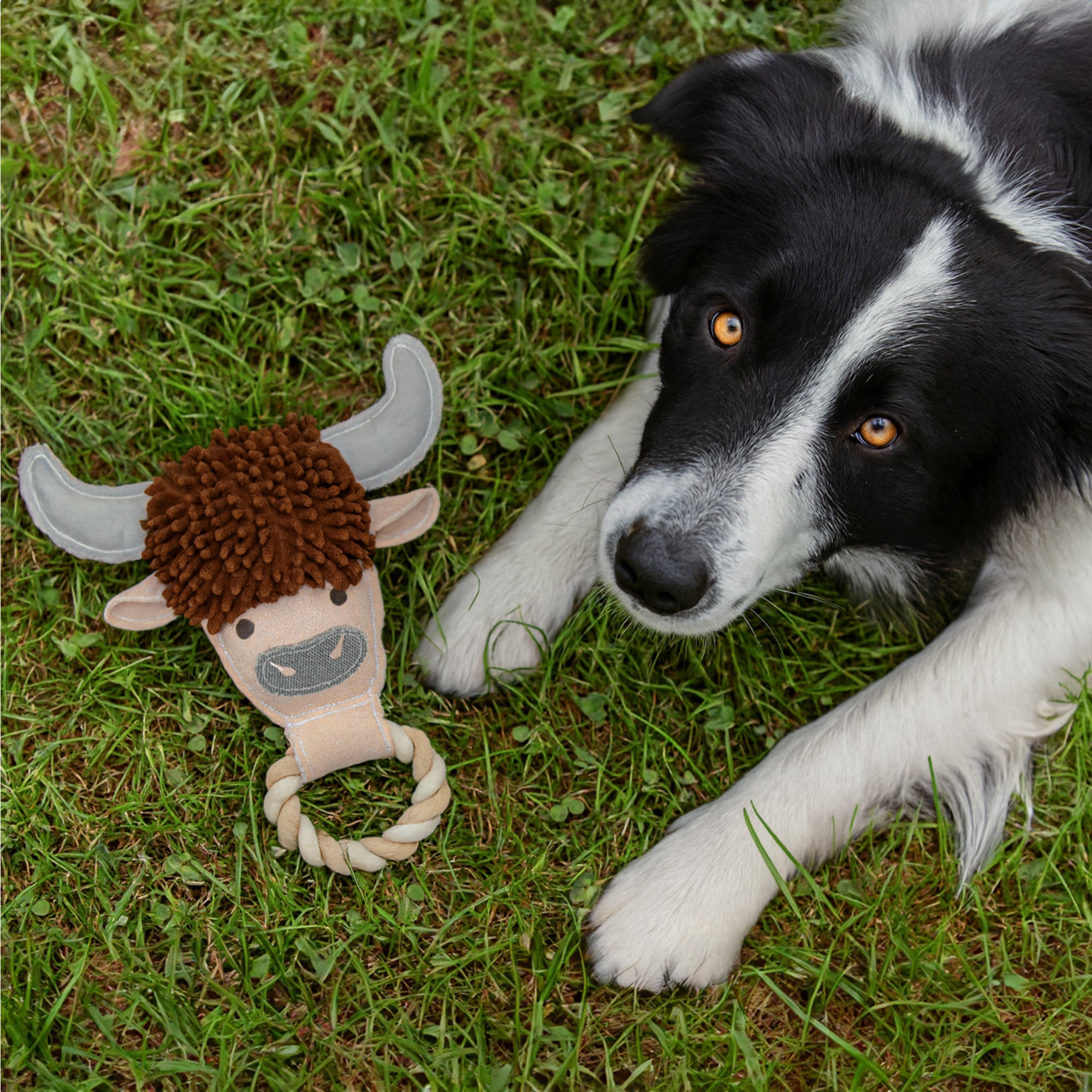 - IN-HOUSE DESIGN: Expertly crafted to resemble a Highland cow’s face, this toy includes horn details, a fuzzy textured hair topper, and embroidered facial features that create a whimsical farm aesthetic. The optional removable faux fur topper adds an extra layer of interactive texture.