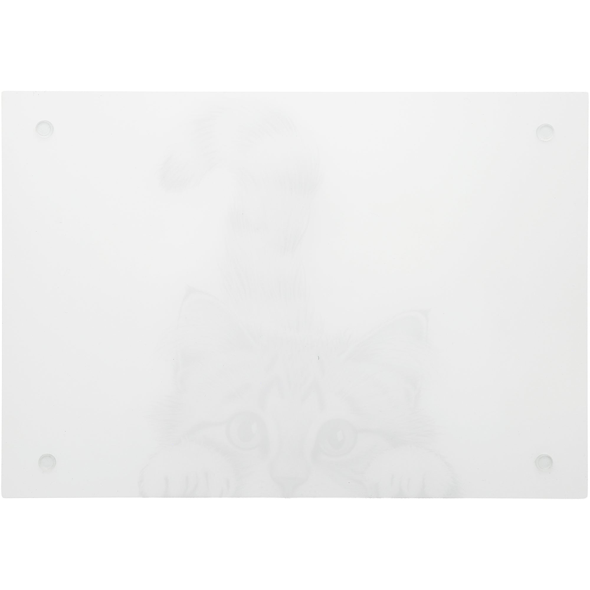 - IN-HOUSE DESIGN: A delightful black-and-white illustration of an inquisitive cat graces the front of this cutting board, adding a whimsical charm that is sure to brighten your cooking experience. The clean, modern design makes it a versatile piece for any kitchen aesthetic.