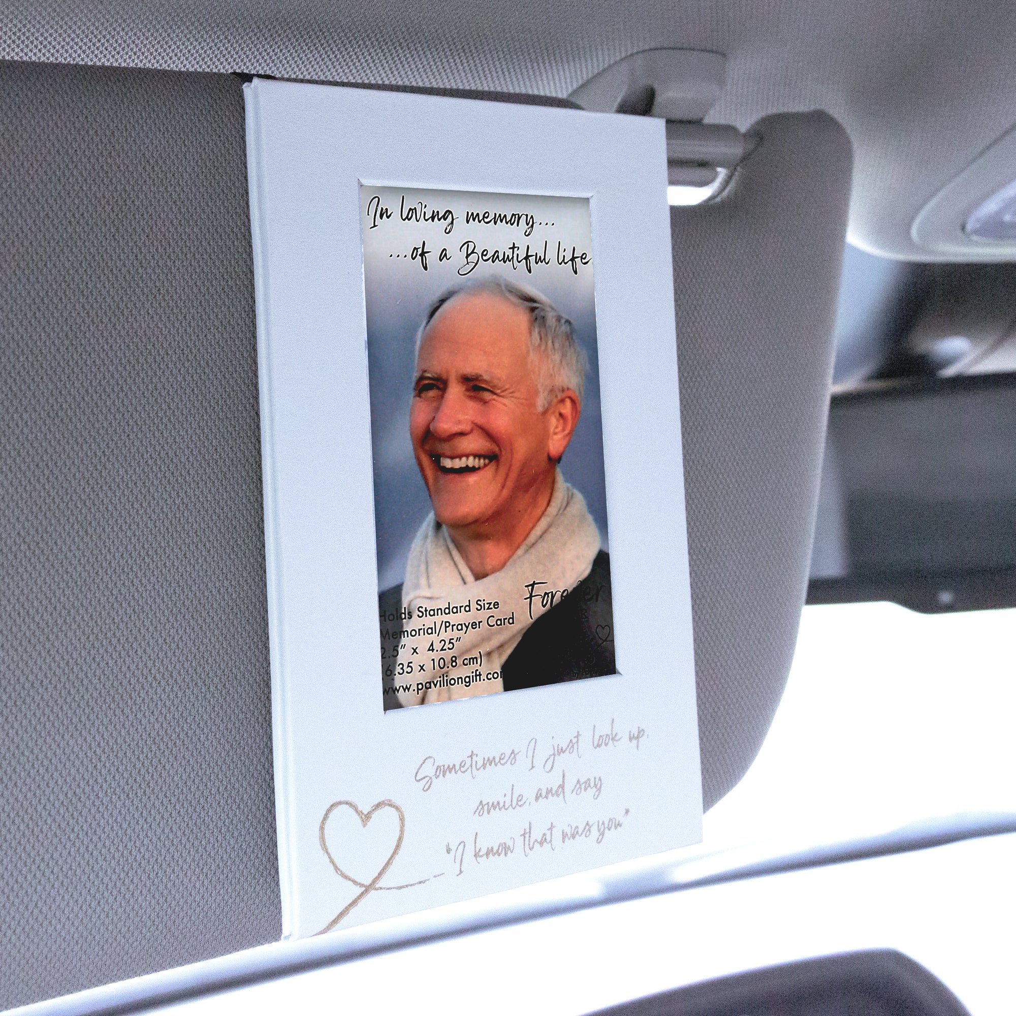 - PREMIUM QUALITY: 6" tall x 3.75" wide PU leather-wrapped cardboard with elastic bands for displaying on your car visor, magnetic closure for easy photo replacement, a single magnet for fridge hanging, an acetate photo cover, and fold-out thick and sturdy cardboard easel back frame holds a precious and beloved 2.5" x 4.25" vertical photo or memorial card.