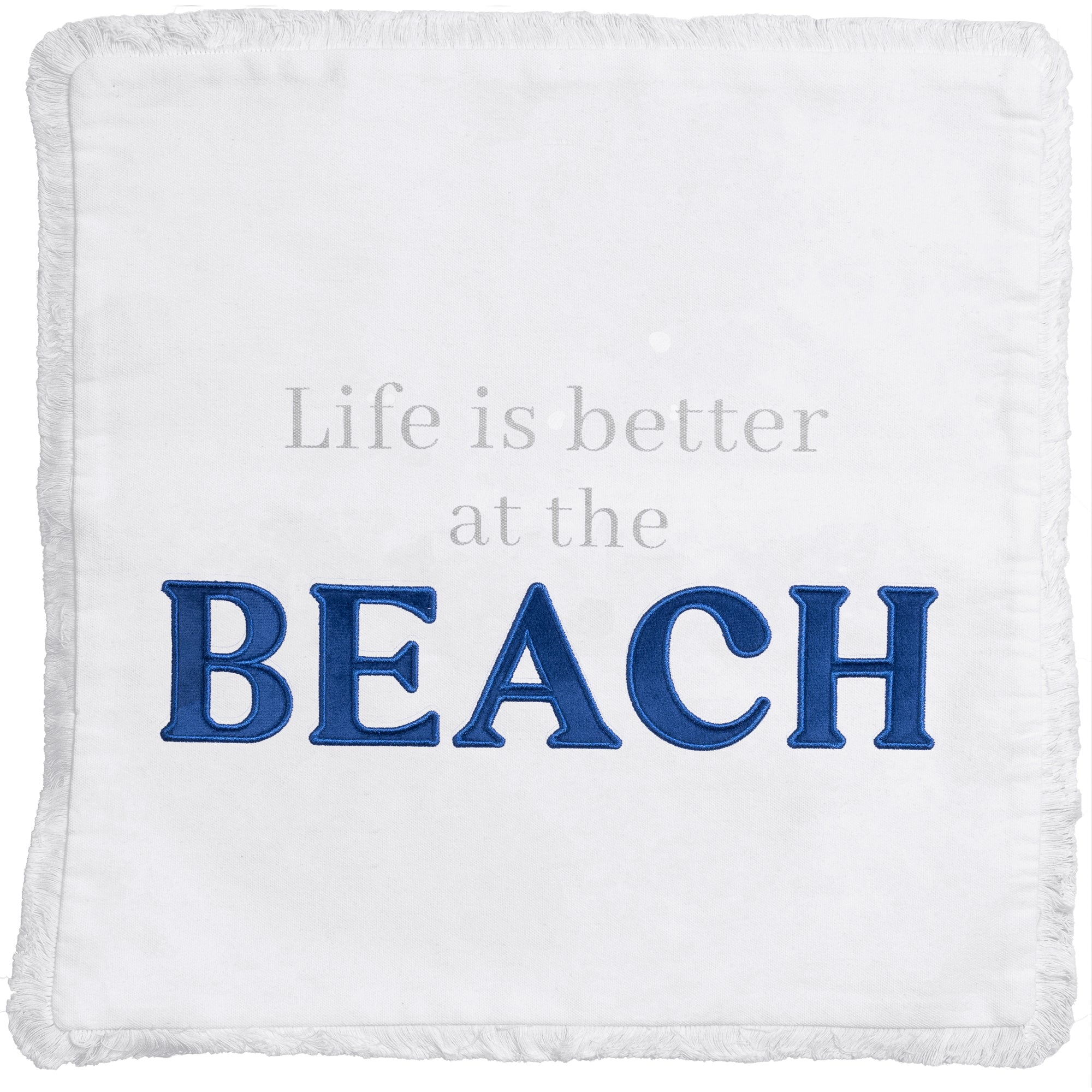 - IN-HOUSE DESIGN: "Life Is Better At The" sentiment is screen printed onto the front side of the case, whereas "Beach" is a velvet-finished applique sewn below.