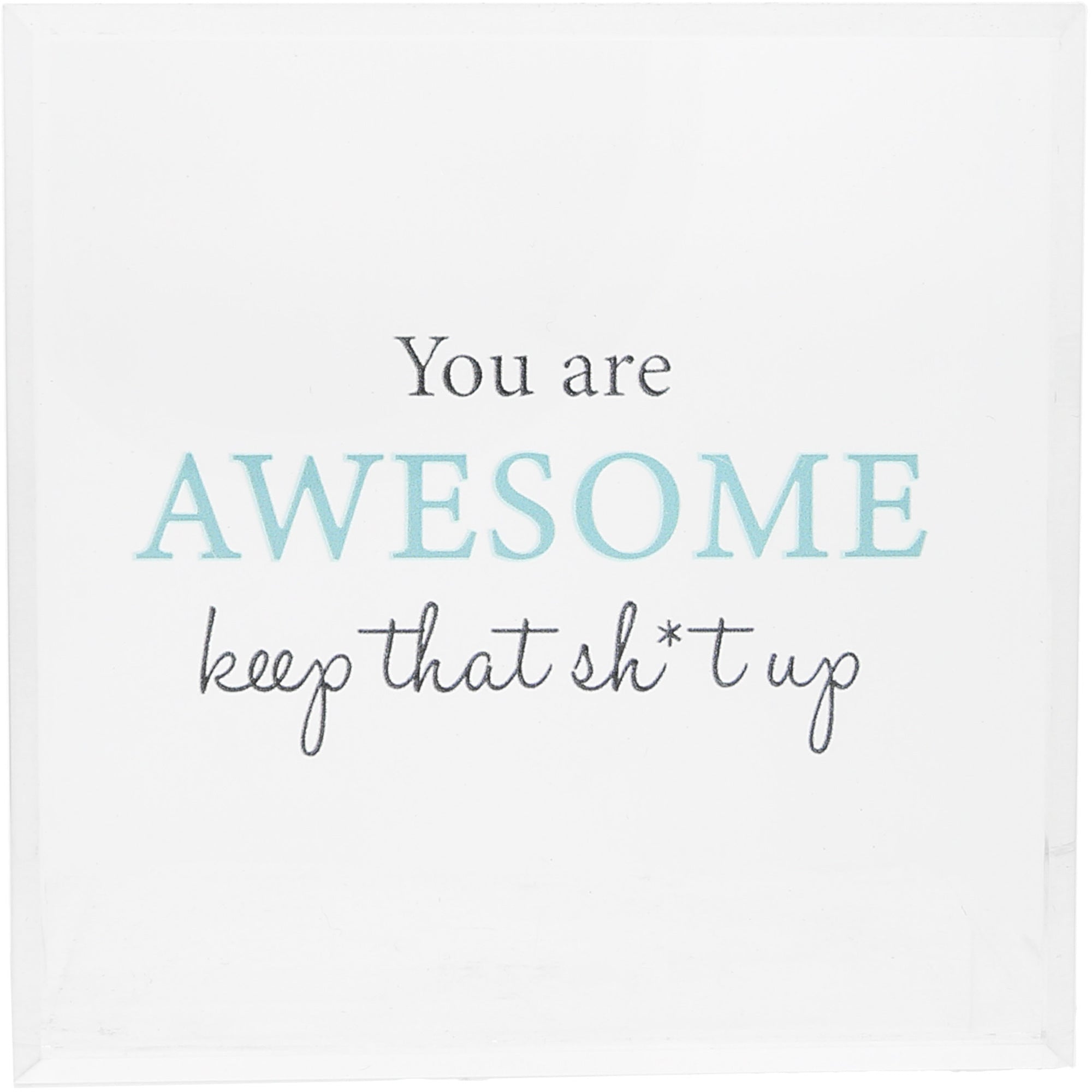 - IN-HOUSE DESIGN: Features the bold, no-nonsense encouragement: “You are AWESOME, keep that shit up,” in an uplifting blend of teal and gray fonts. The script styling adds charm, while the direct language delivers a punch of motivation with a touch of sass.