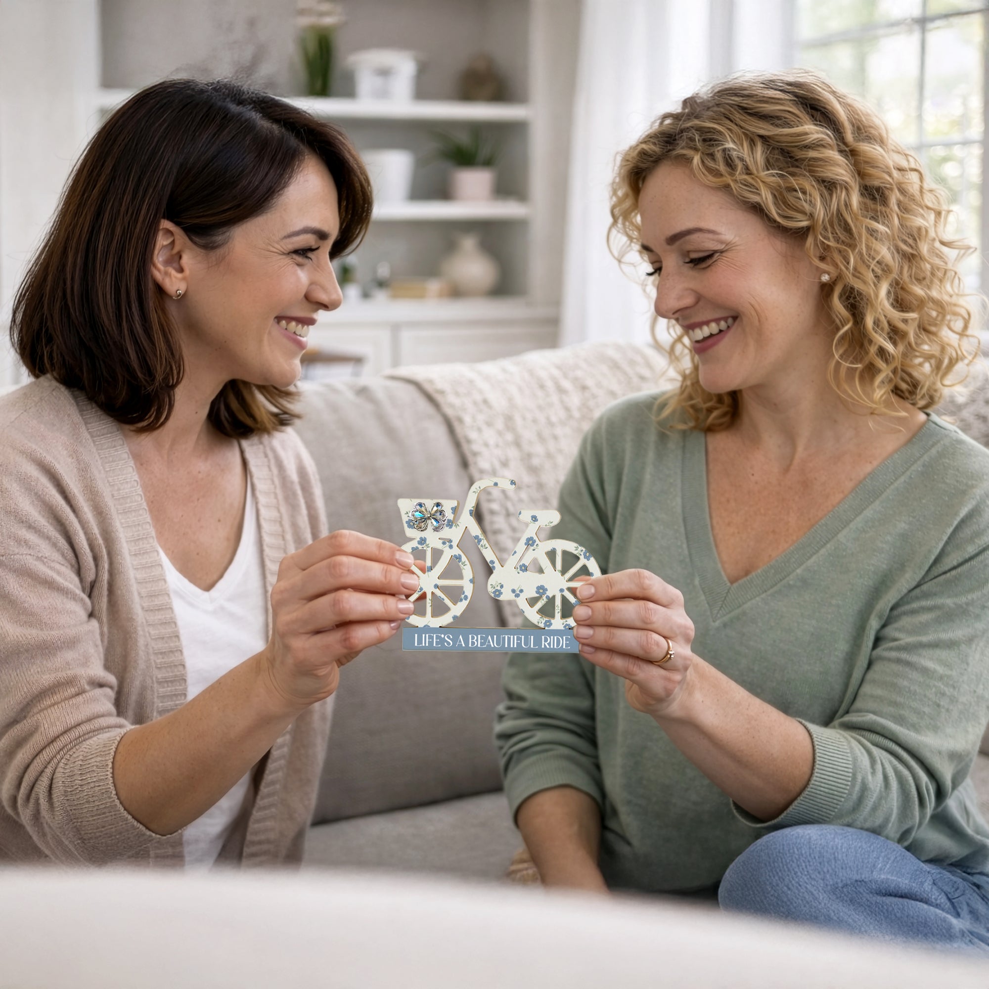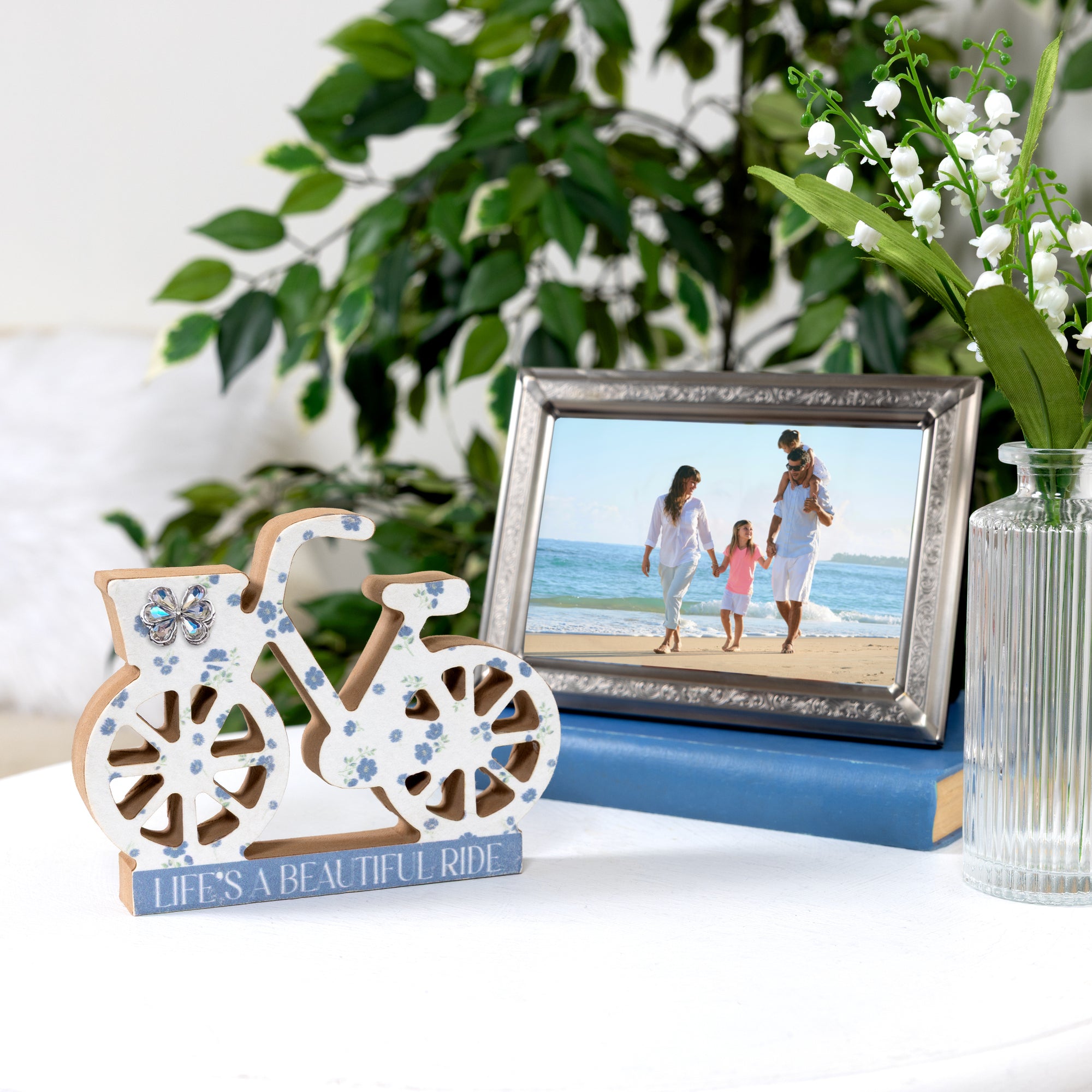- PREMIUM QUALITY: A 4.5" MDF bicycle plaque featuring printed floral paper, dried-paper details, and glittery 3D embellishments. The sentiment “Life’s a Beautiful Ride” appears on a soft blue base. Sturdy yet lightweight, it’s perfect for displaying on desks, shelves, or vanities.