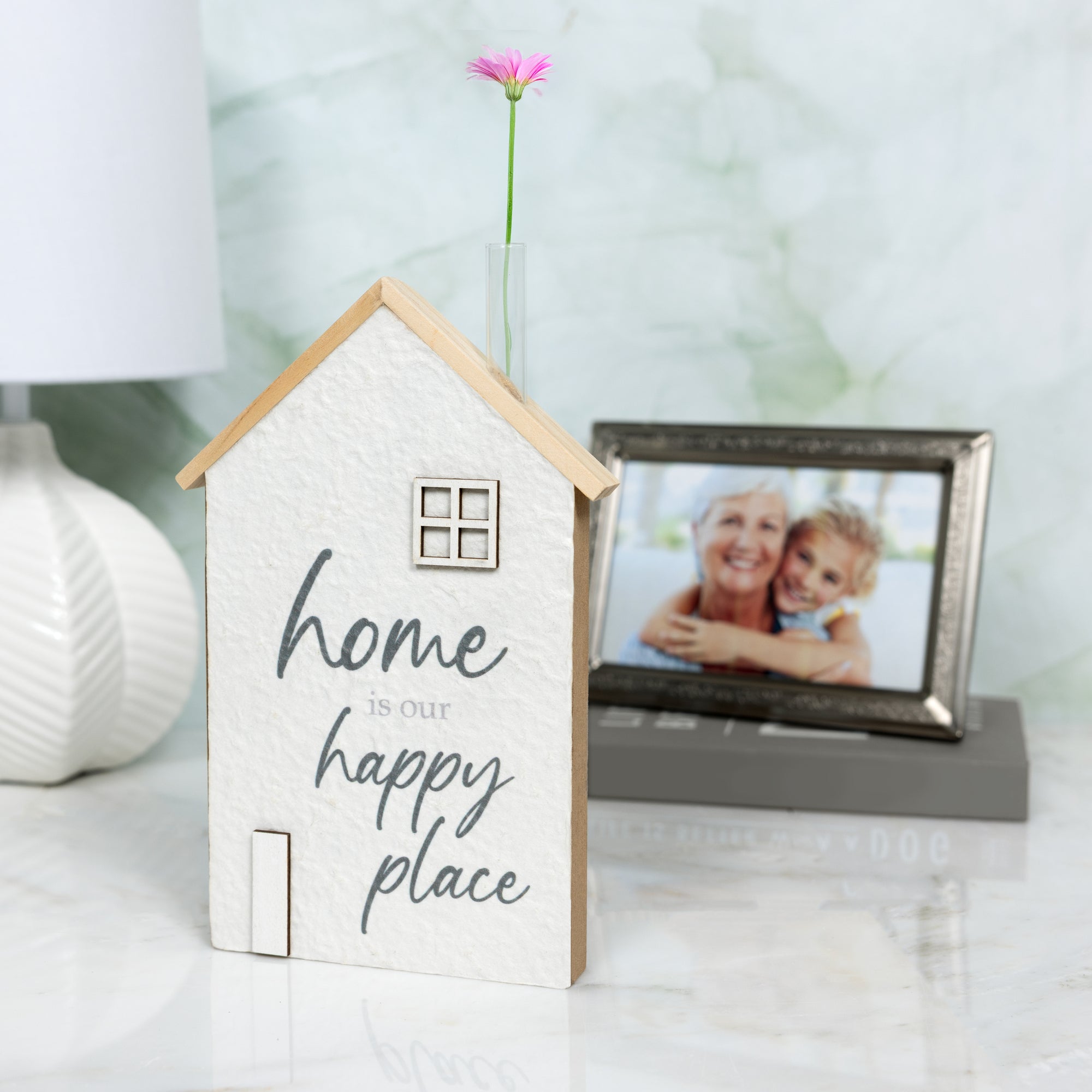 • PREMIUM QUALITY: This 6" tall wooden house plaque is crafted from MDF and pine with a soft gray front, minimalist cutouts, and a removable glass tube vase. Compact and sturdy, it adds style and purpose to any small space.