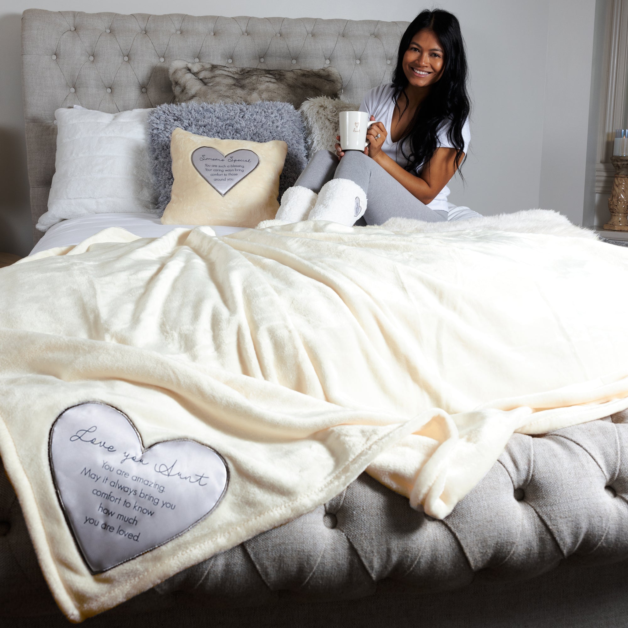 - A INSPIRING GIFT TO WARM THE HEART - Personalized with a message of comfort, these gifts for aunts are designed in-house. Each blanket has a heart-warming text printed onto an embroidered heart that tells your sentiment in a heartfelt way.