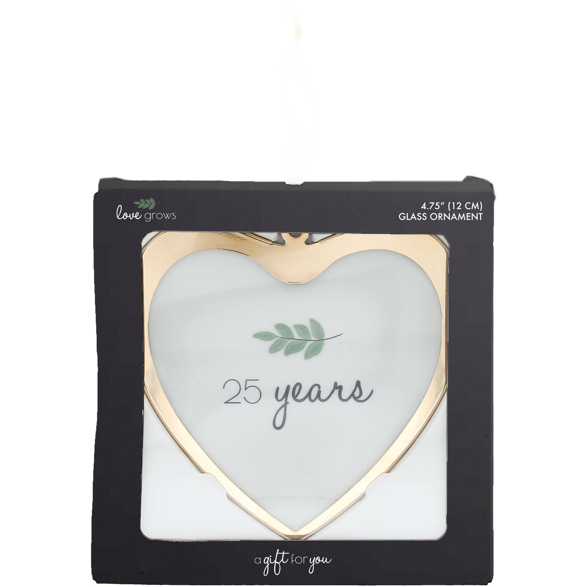 - IN-HOUSE DESIGN: Some greenery leaves are accompanied by the heartfelt wedding anniversary sentiment "25 Years" elegantly placed onto the centerpiece of the ornament.