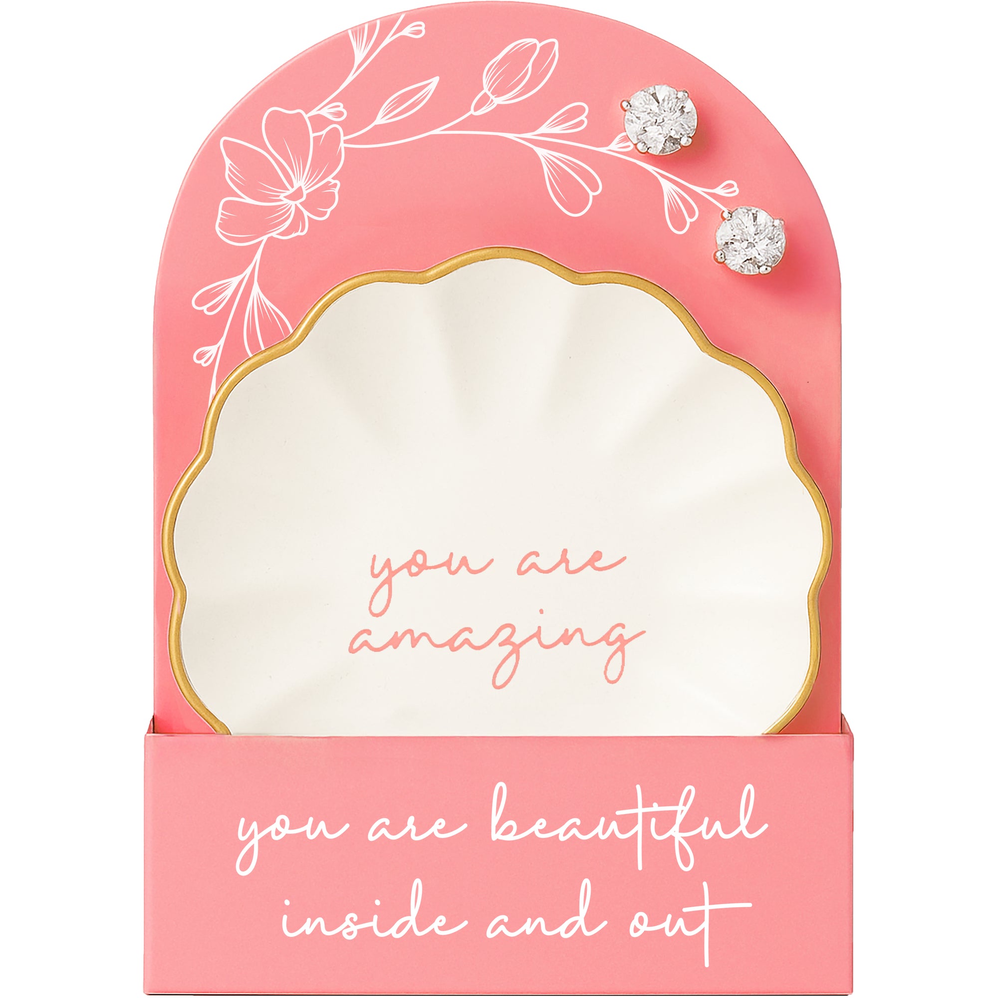 - IN-HOUSE DESIGN: The dish features the bold, uplifting sentiment “you are amazing” in coral red, with a coordinating deep pink backer card that reads “You are beautiful inside and out.”
