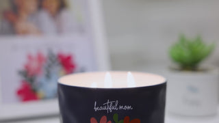• IN-HOUSE DESIGN: The new & innovative candle offers a unique message for your loved one within the wax as time progresses. You will see the polka dots and large pink flower after about 10 minutes. As you watch, the entire decal will appear after 60 minutes. Then, the message will hide again and reappear with each burn. The front of the candles has a simplistic "Beautiful Mom" decal accompanied by a bouquet of flowers, a matte blue finished exterior, and glossy white interior walls.