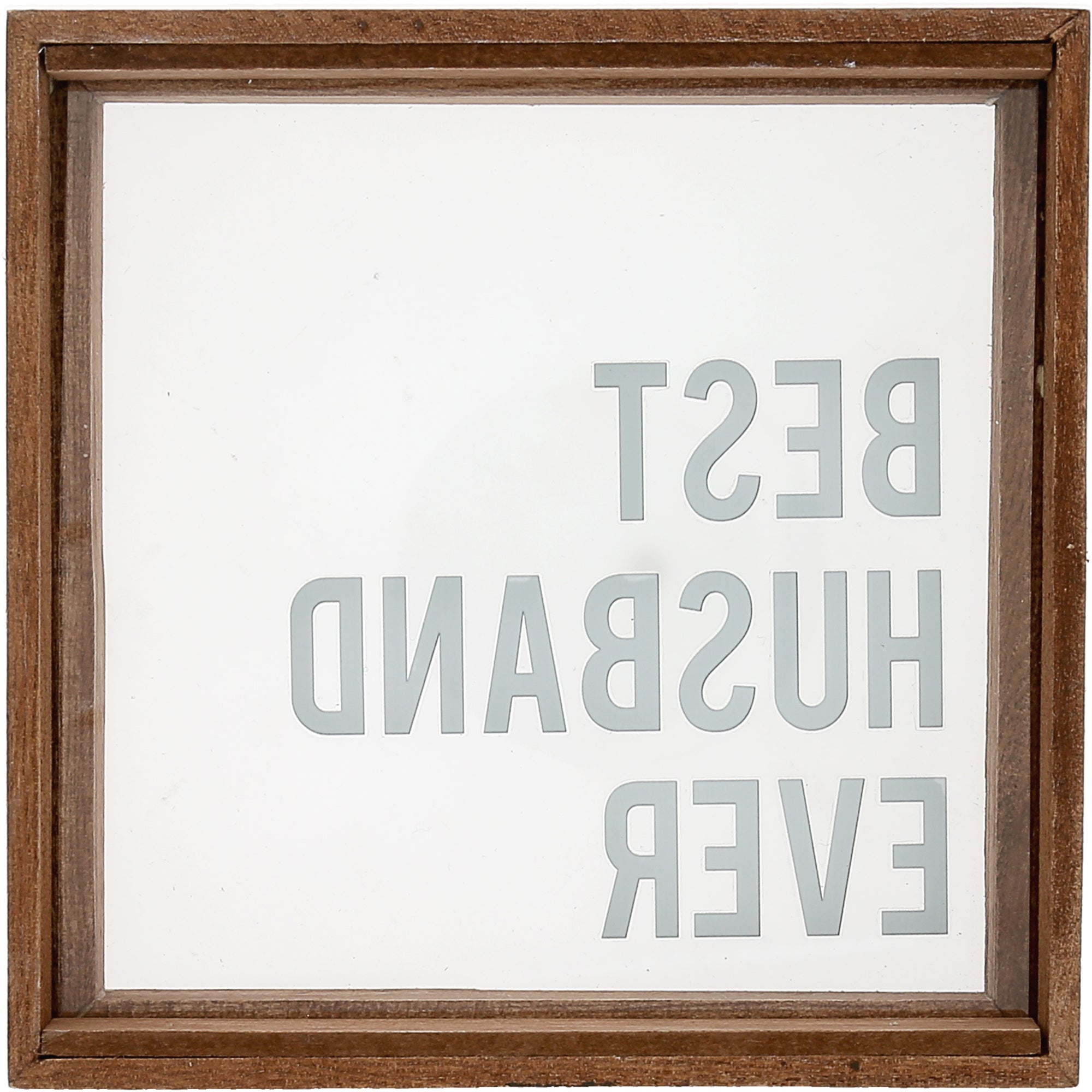 - PREMIUM QUALITY: This 5" x 5" plaque is constructed with a dark wood-stained frame and a clear glass front displaying the sentiment “Best Husband Ever.” Comes with a metal sawtooth hanger for wall mounting or can stand freely.
