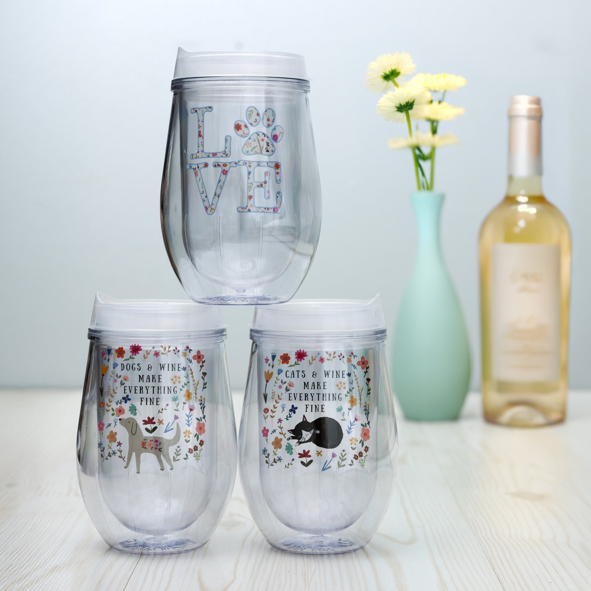 - IN-HOUSE DESIGN: The charming "Cats & Wine Make Everything Fine" sentiment, surrounded by whimsical floral patterns and a playful black cat illustration, makes this tumbler a fun and stylish choice for any cat owner. The transparent acrylic enhances the bright, colorful design, making it a cheerful and engaging piece of drinkware that cat lovers will adore.