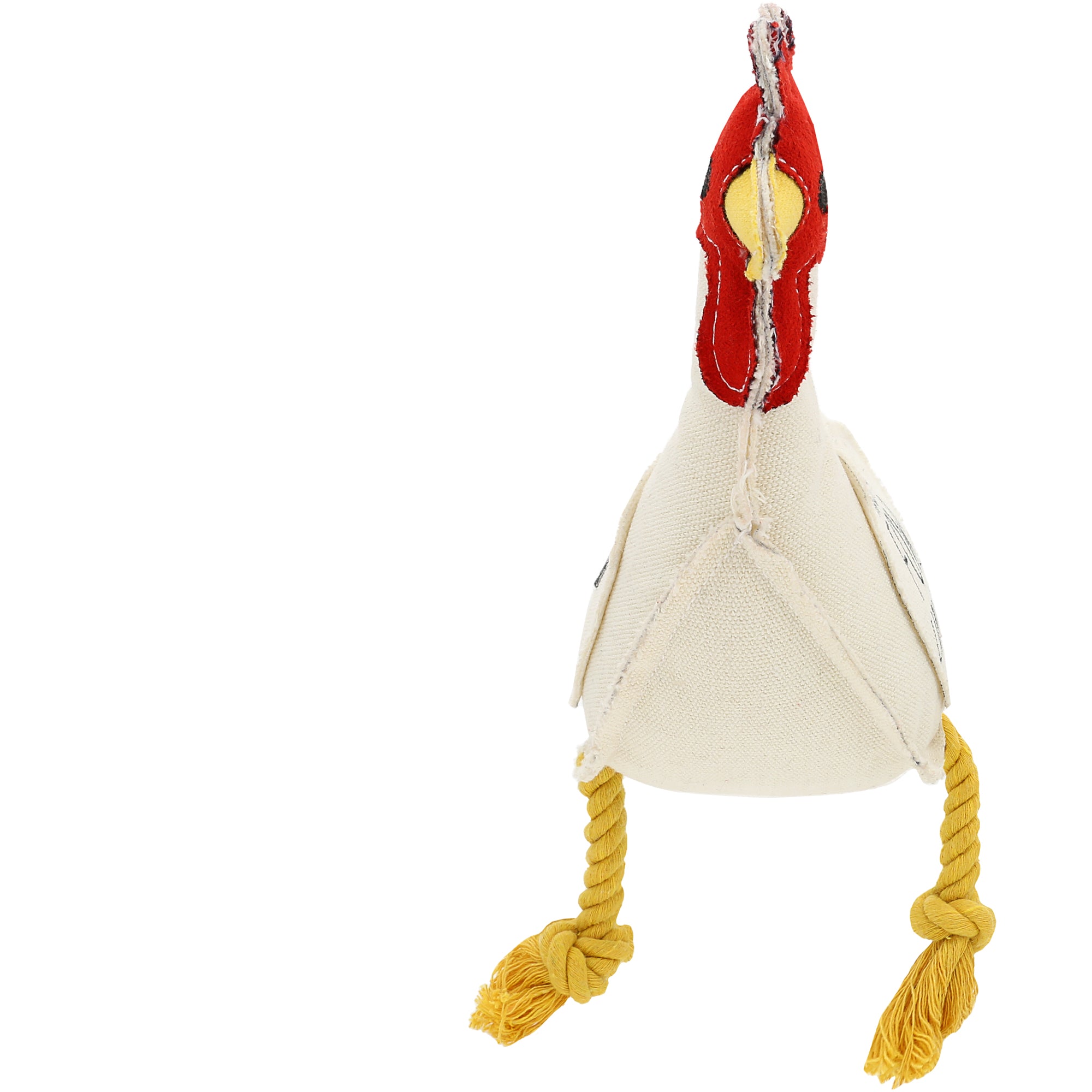 - PREMIUM QUALITY: Made from a sturdy polyester and cotton blend, this squeaky chicken toy offers hours of fun and durability. Features tightly woven rope legs for tugging and flapping wings that crinkle for added texture. Designed with reinforced seams for long-lasting play.