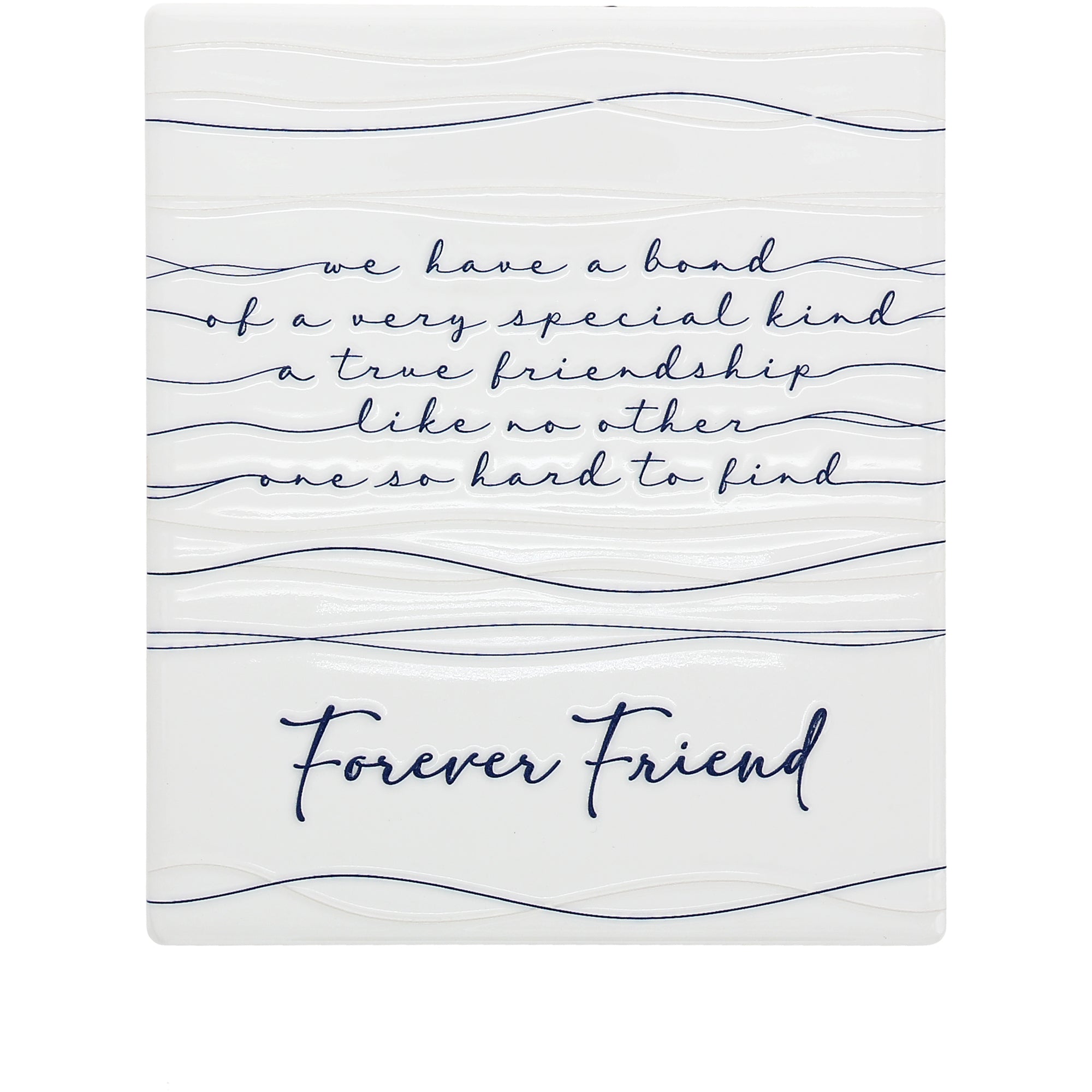 - IN-HOUSE DESIGN: The design features gentle navy linework that mimics flowing string, wrapping around the handwritten-style message: “We have a bond of a very special kind, a true friendship like no other, one so hard to find.” Below, the words “Forever Friend” are printed in deep blue raised lettering for contrast and emotional emphasis.