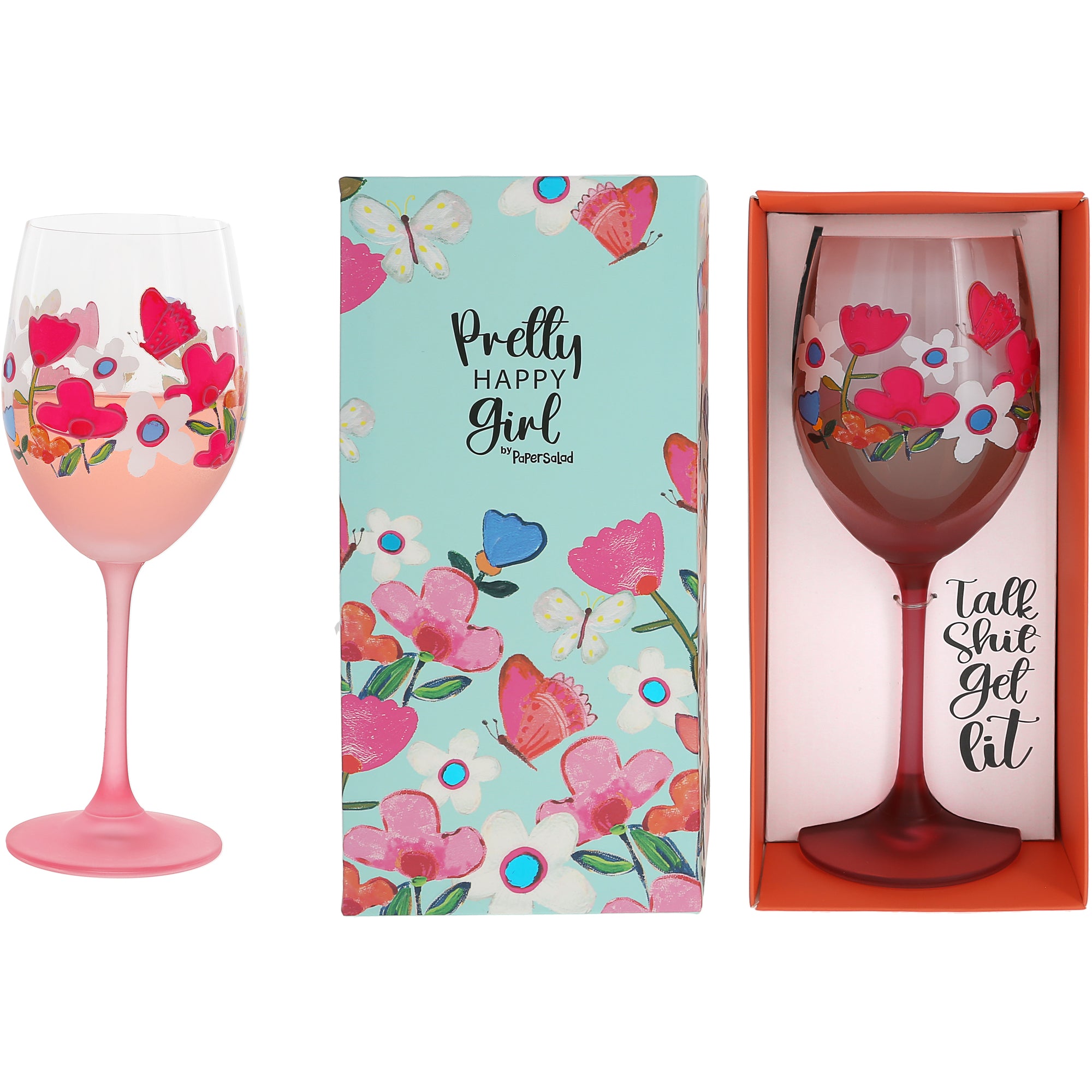 - IN-HOUSE DESIGN: The glass showcases the humorous phrase, "Talk sh*t, get lit," paired with a vibrant, bold floral design that captures attention. The colorful hand-painted accents elevate the design, making it both a playful and aesthetically pleasing piece for any kitchen or bar.