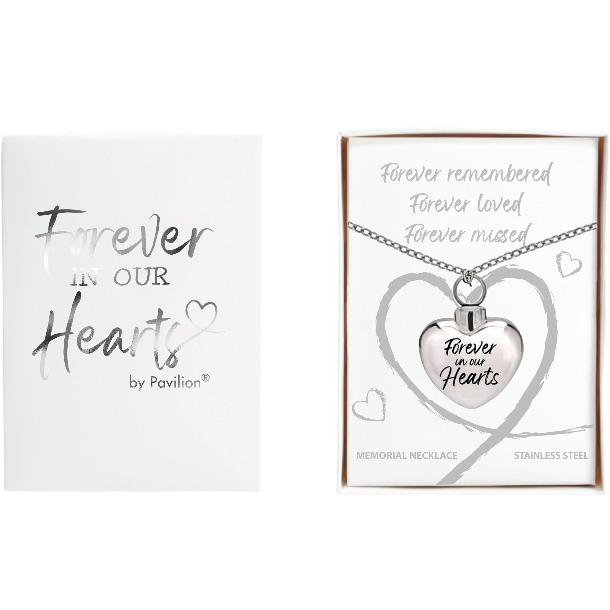 - IN-HOUSE DESIGN: Part of Pavilion’s Forever in Our Hearts collection, this pendant features the engraved sentiment “Forever in Our Hearts” on the front and a simple heart outline on the back—symbolizing eternal love and remembrance. The sleek engraving in black debossed lettering stands out beautifully against the high-shine metal surface, creating a timeless look that complements any style while carrying deep emotional meaning.