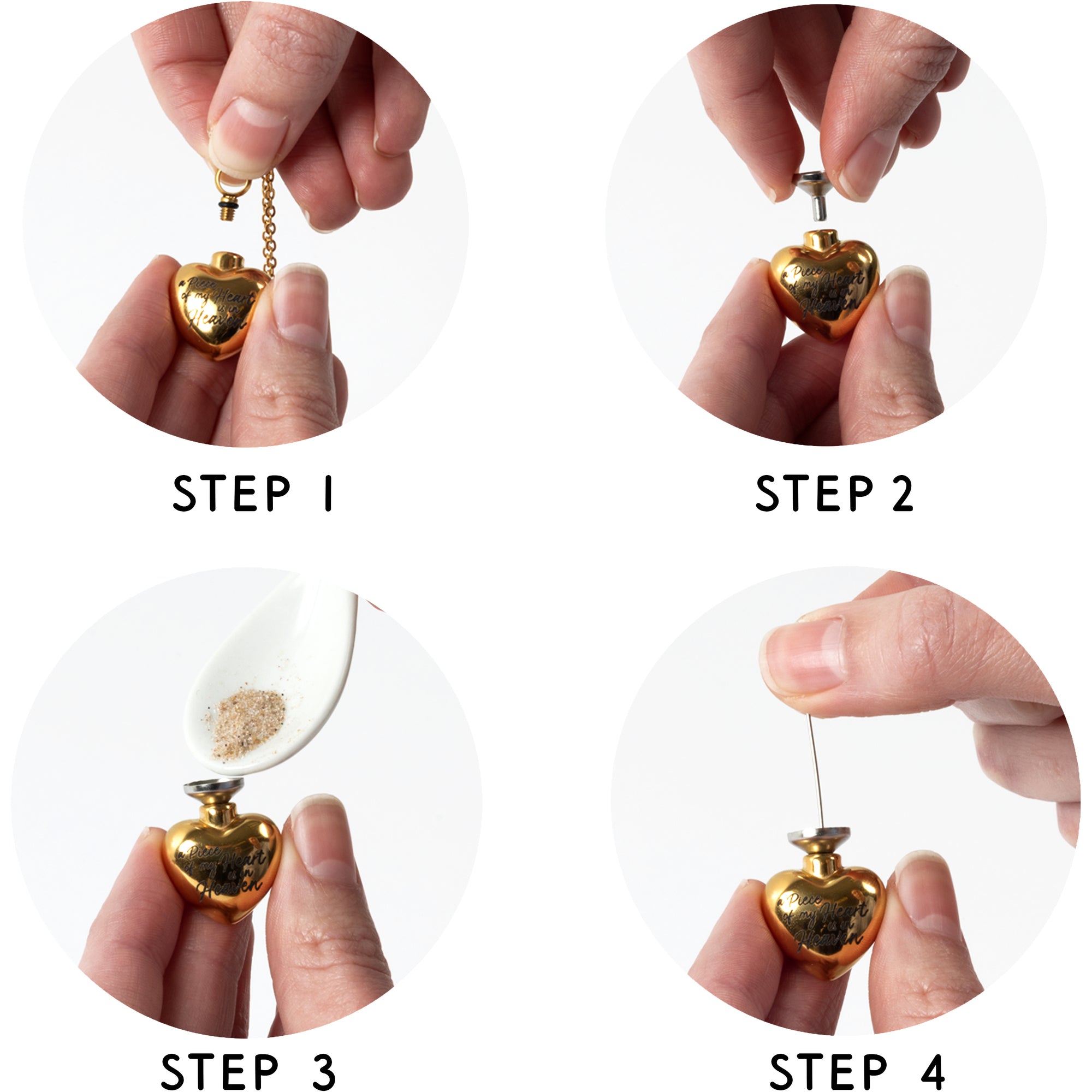- PREMIUM QUALITY: This 0.75" x 1.25" gold-tone stainless steel heart pendant is both durable and elegant, designed to hold a small keepsake in its secure screw-top compartment. The included 6.5"–18.5" adjustable matching gold chain ensures a comfortable, customizable fit. Each necklace includes a small filling kit for easy use and comes beautifully packaged in a custom Forever in Our Hearts box for display or gifting.