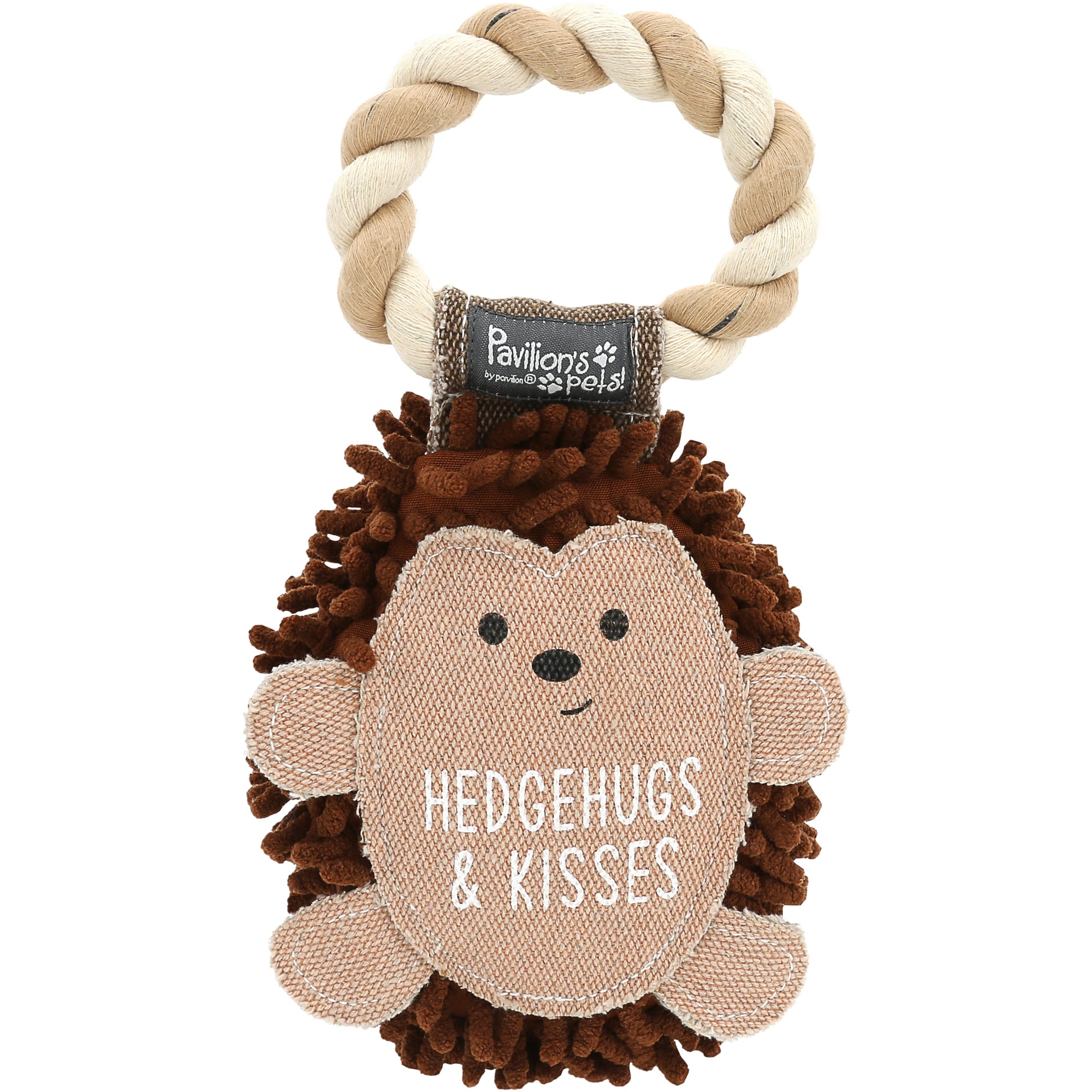• PREMIUM QUALITY: Crafted from a durable polyester and cotton blend, this plush dog toy features a squeaker inside and a rope handle for easy gripping or tug-of-war play. The fuzzy hedgehog “quills” add soft texture dogs love to chew.