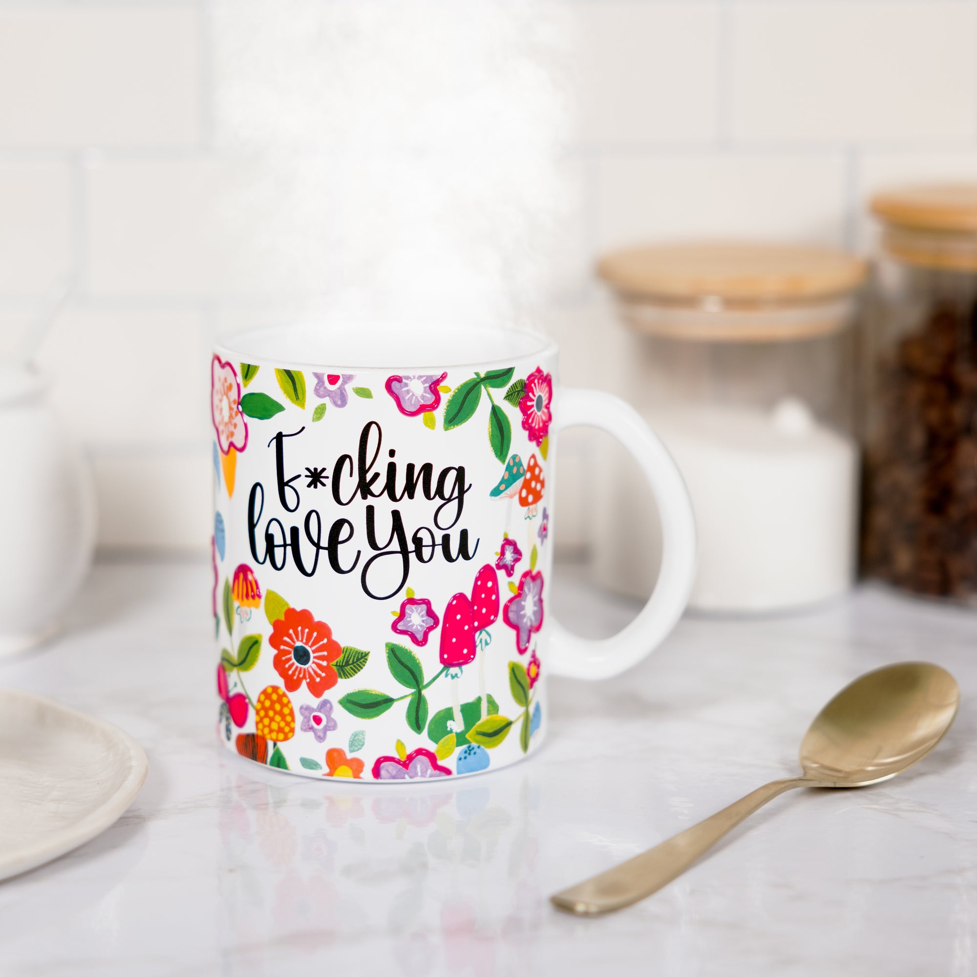 - IN-HOUSE DESIGN: Adorned with colorful flowers and the sweet phrase "F*cking love you," this mug is a playful way to express affection. The vibrant floral design and raised hand-painted details add a three-dimensional feel, making the mug as fun to hold as it is to look at. Whether you’re using it to sip your morning coffee or as a decorative piece, it’s a delightful reminder of love and appreciation.