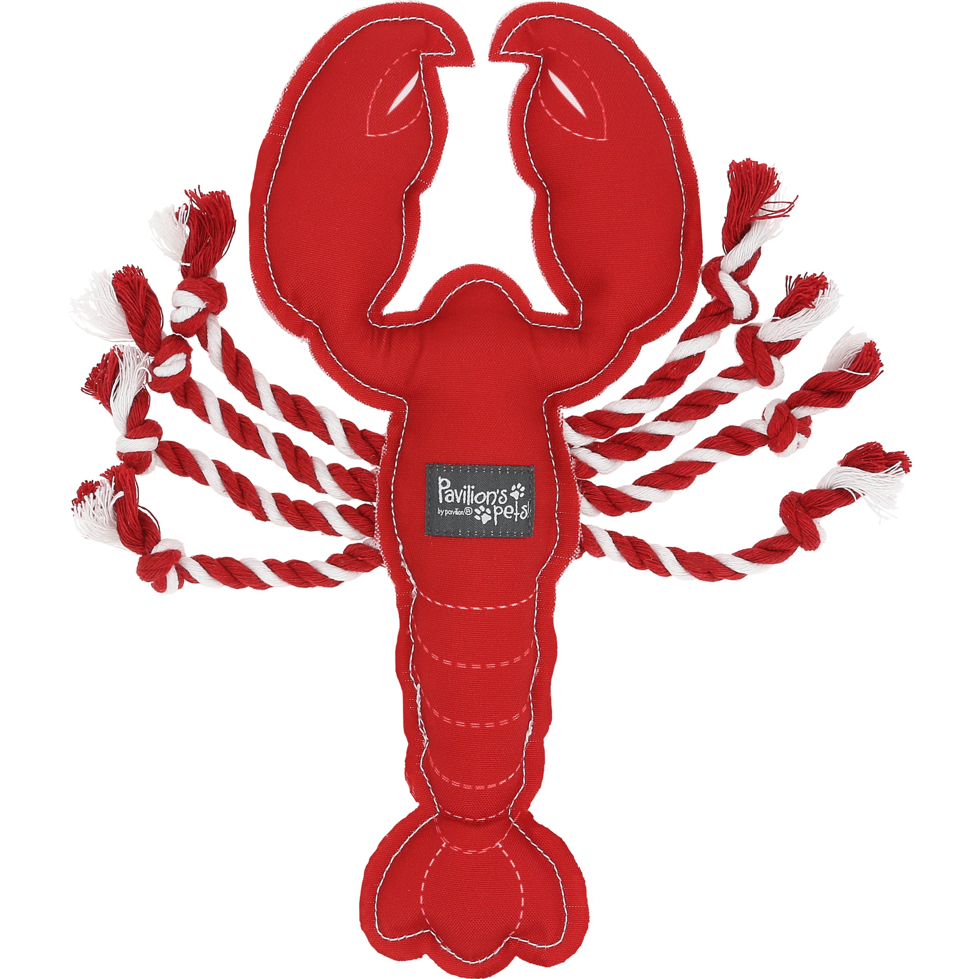 - PREMIUM QUALITY: A durable 12" lobster-shaped dog toy crafted from polyester canvas and natural cotton rope. Includes a squeaker inside, multiple rope arms for tugging, and heavy stitching for durability. Lightweight yet strong for long-lasting play.