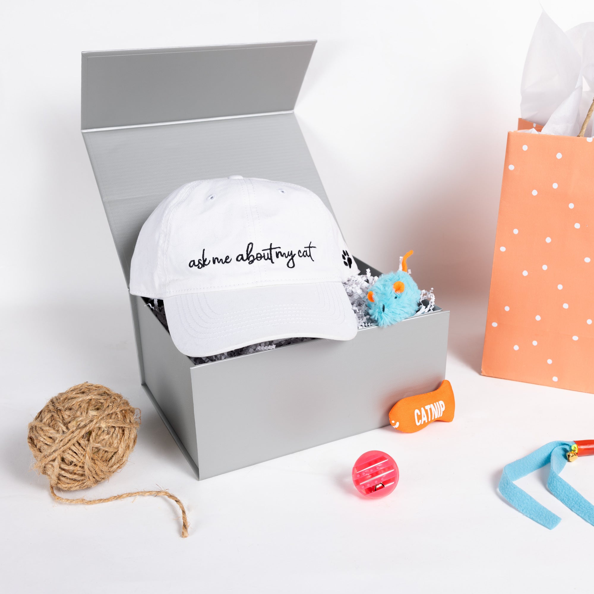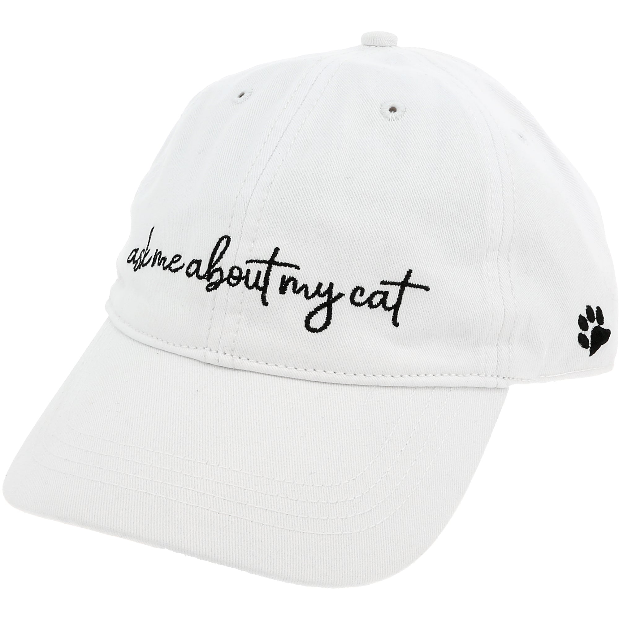 - IN-HOUSE DESIGN: The dark gray embroidered sentiment “Ask Me About My Cat” adds a playful and expressive touch to the cap, letting fellow feline fans know about your love for cats. A charming paw print is also embroidered on the side, giving the hat an extra touch of personality. Its sleek white color ensures it pairs well with a variety of casual outfits, making it a go-to accessory for cat parents.