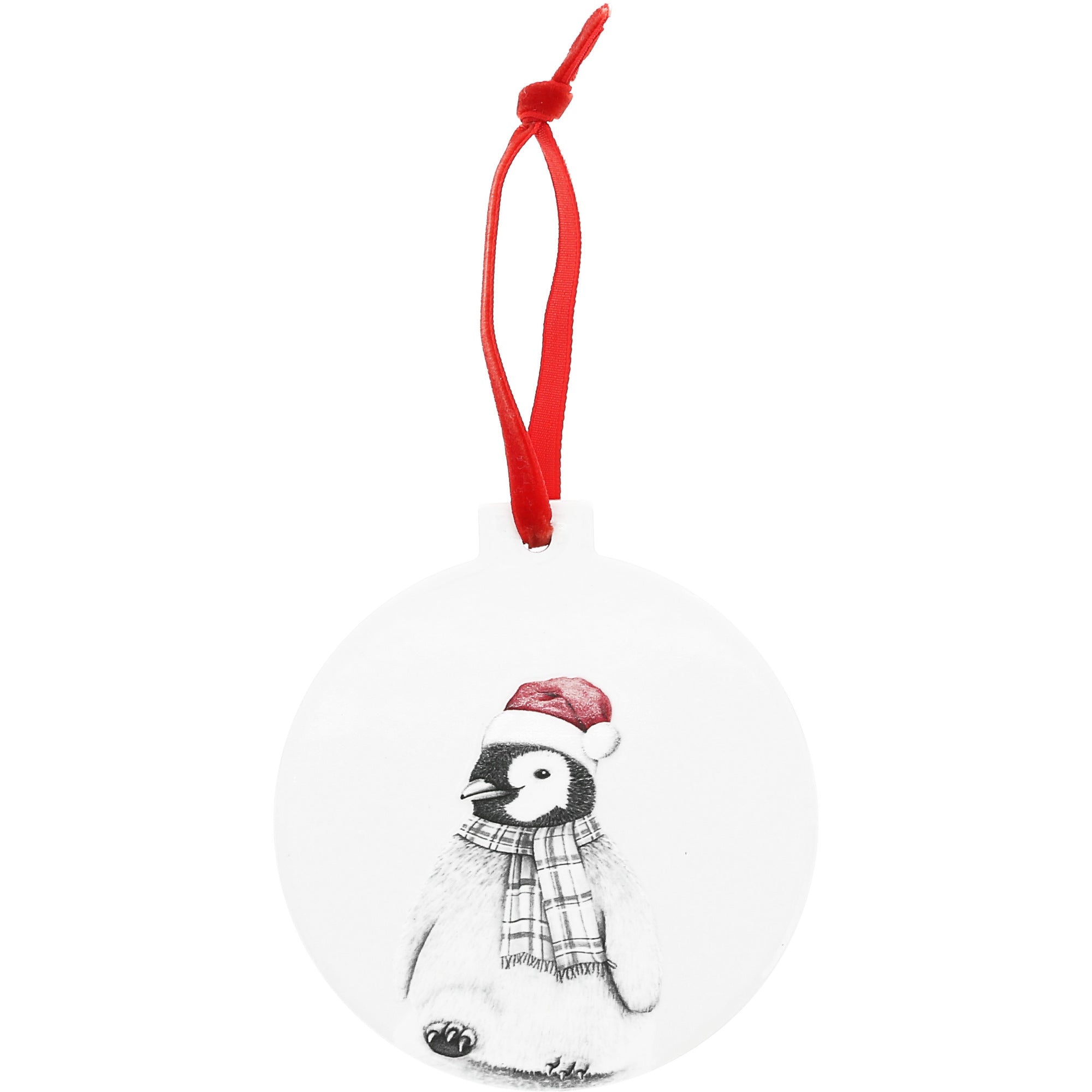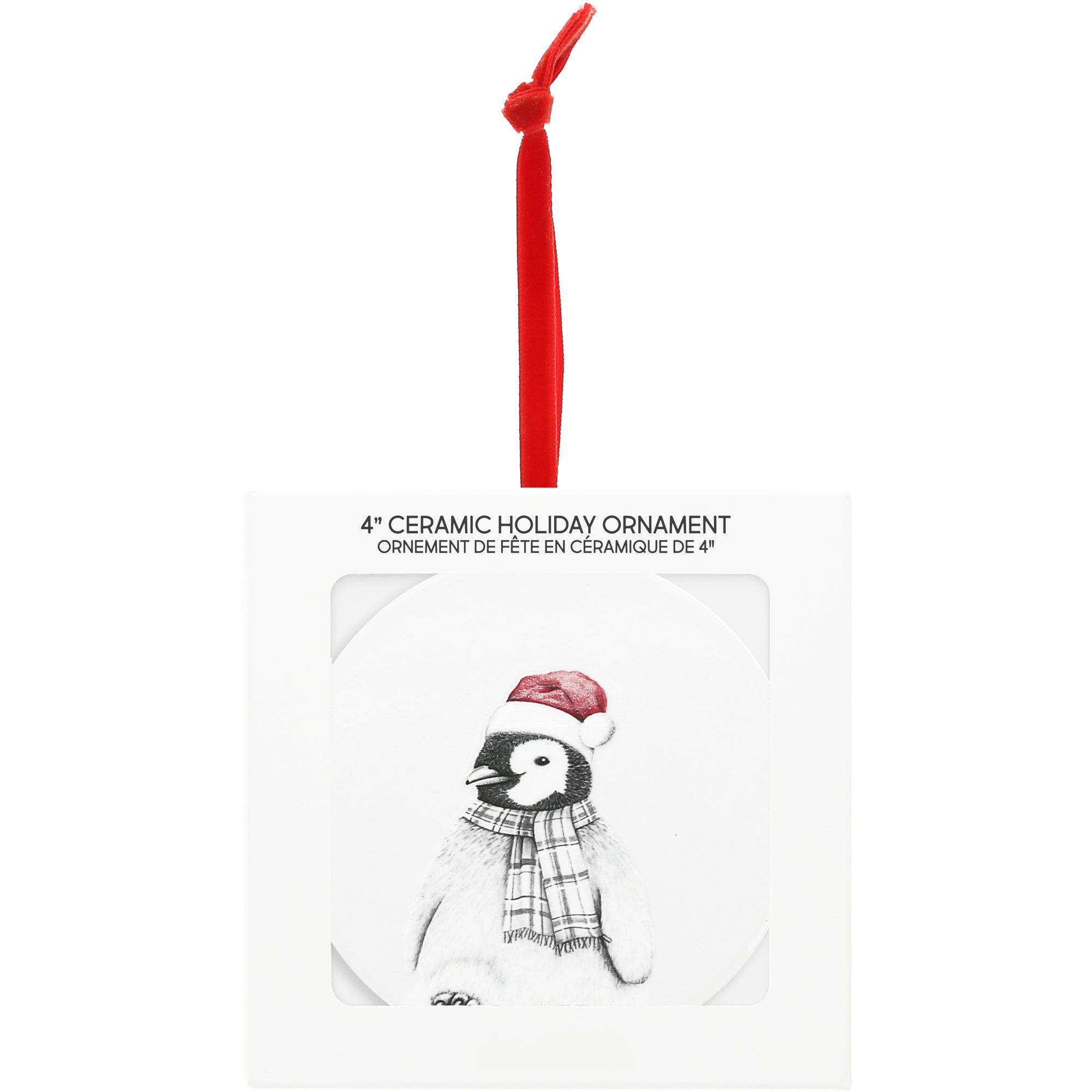 - PREMIUM QUALITY: This 3.5" x 4" ceramic tile ornament showcases a bundled-up penguin wearing a Santa hat and scarf. With full-color 3D art printed on both sides and a red velvet ribbon for hanging, this piece adds cozy character to any tree.