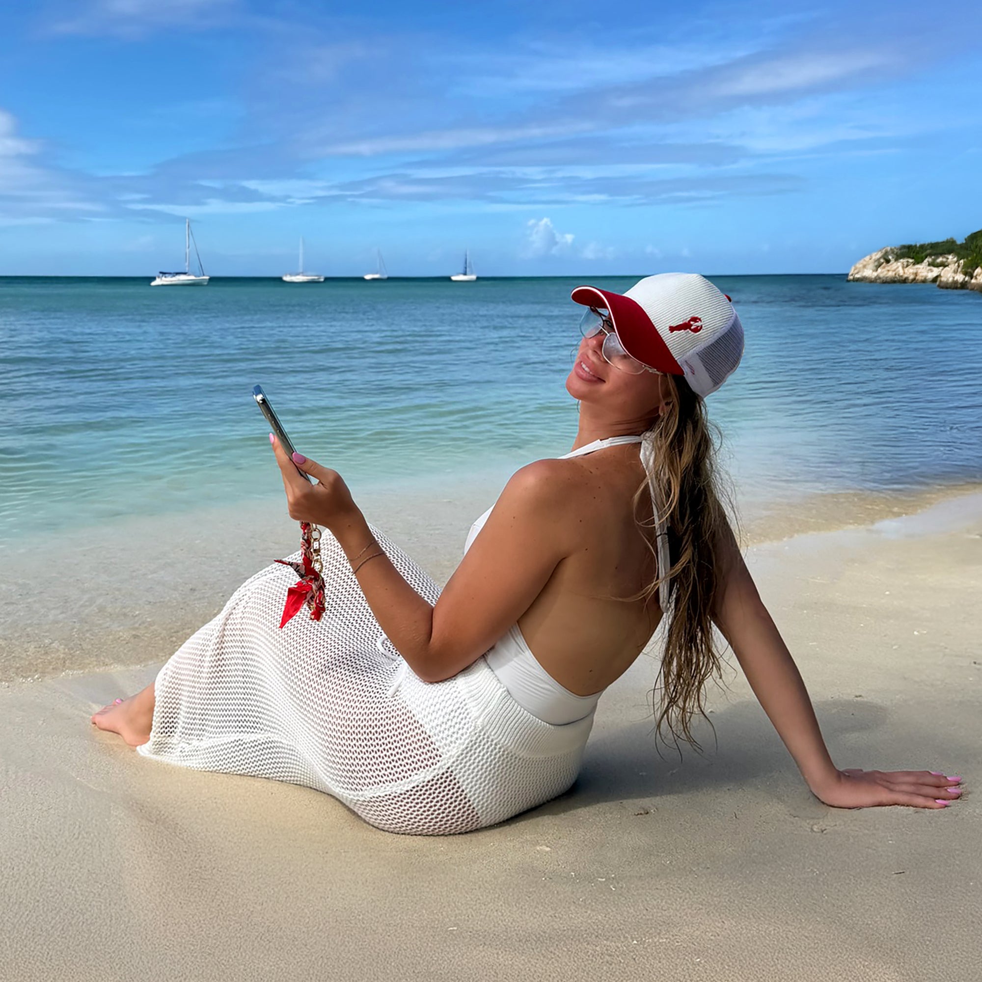 Red Coral Chained Scarf Hands-Free Wrist Strap